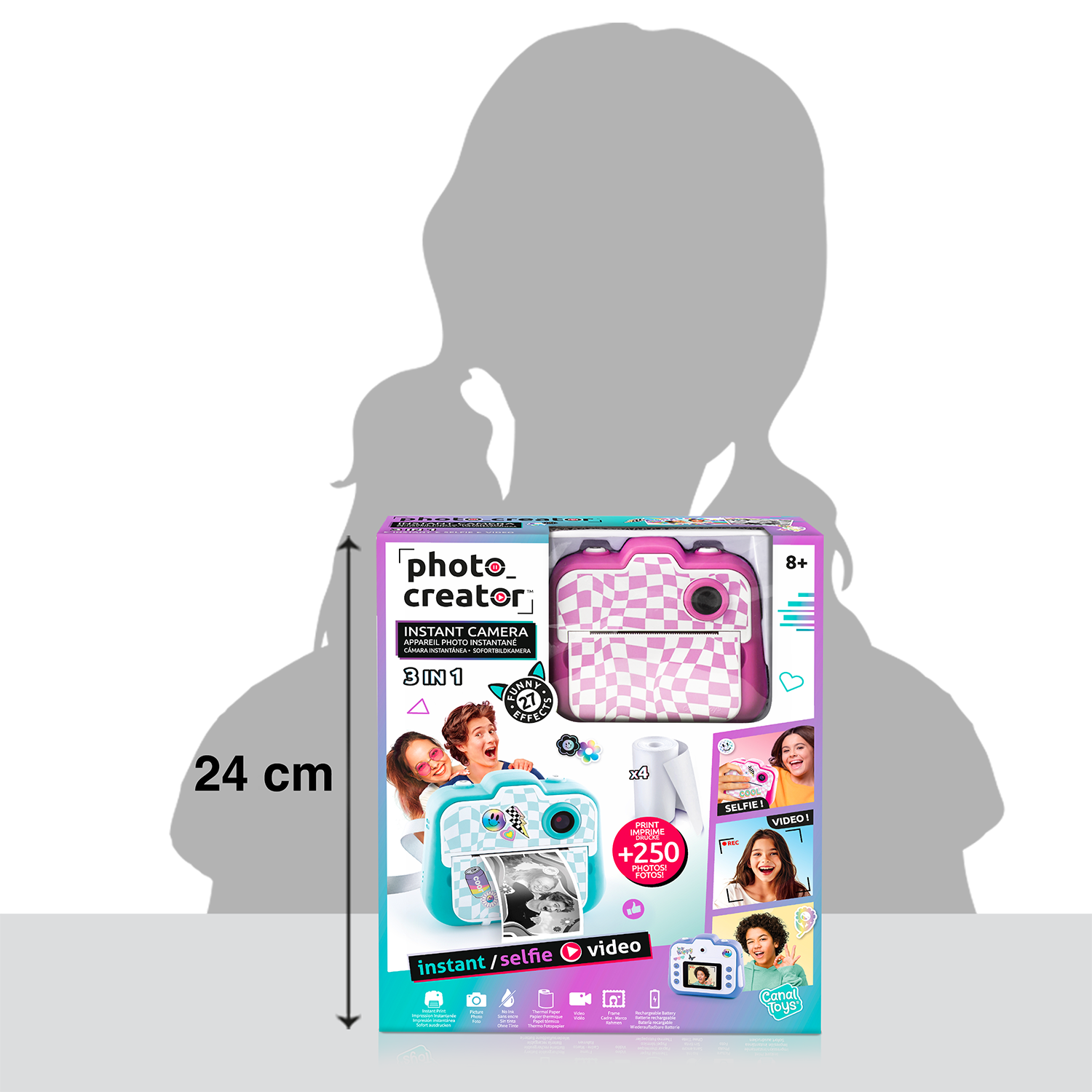 - DIMENSIONES: Caja: 20 x 6 x 24 cm. Tamaño de la cámara: 13,1 x 4 x 9,5 cm. Producto desarrollado en Francia. Recomendado para niñas y niños a partir de 8 años.