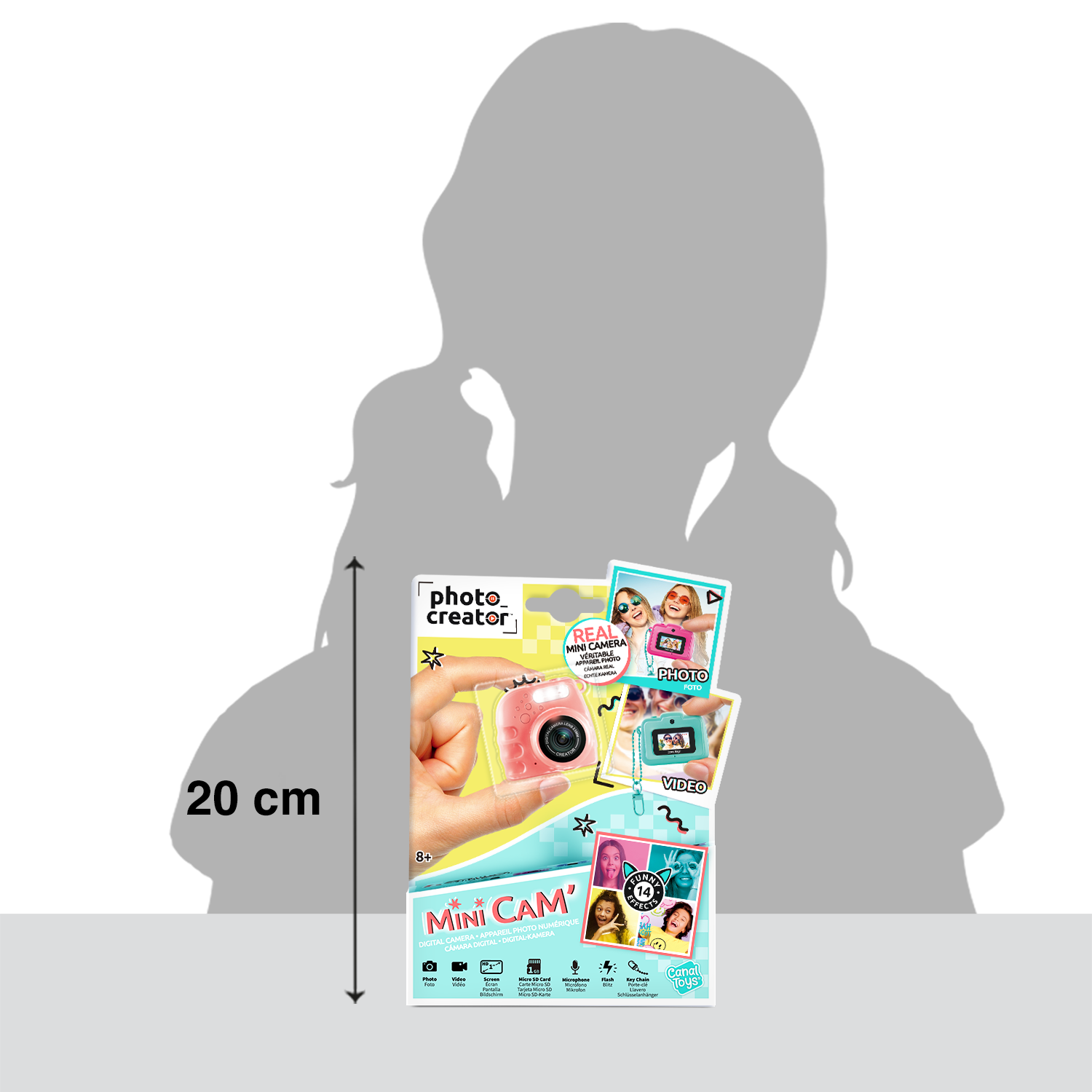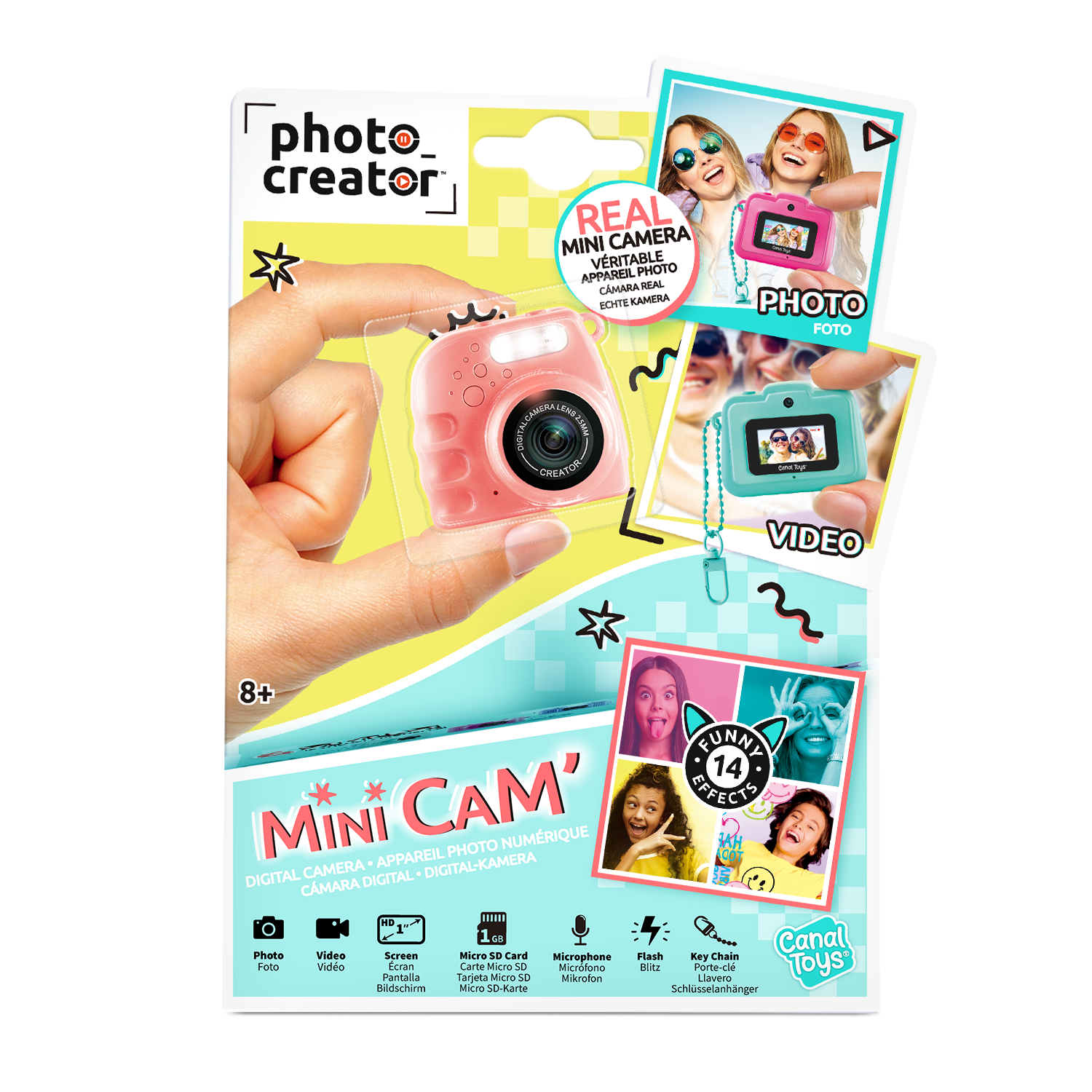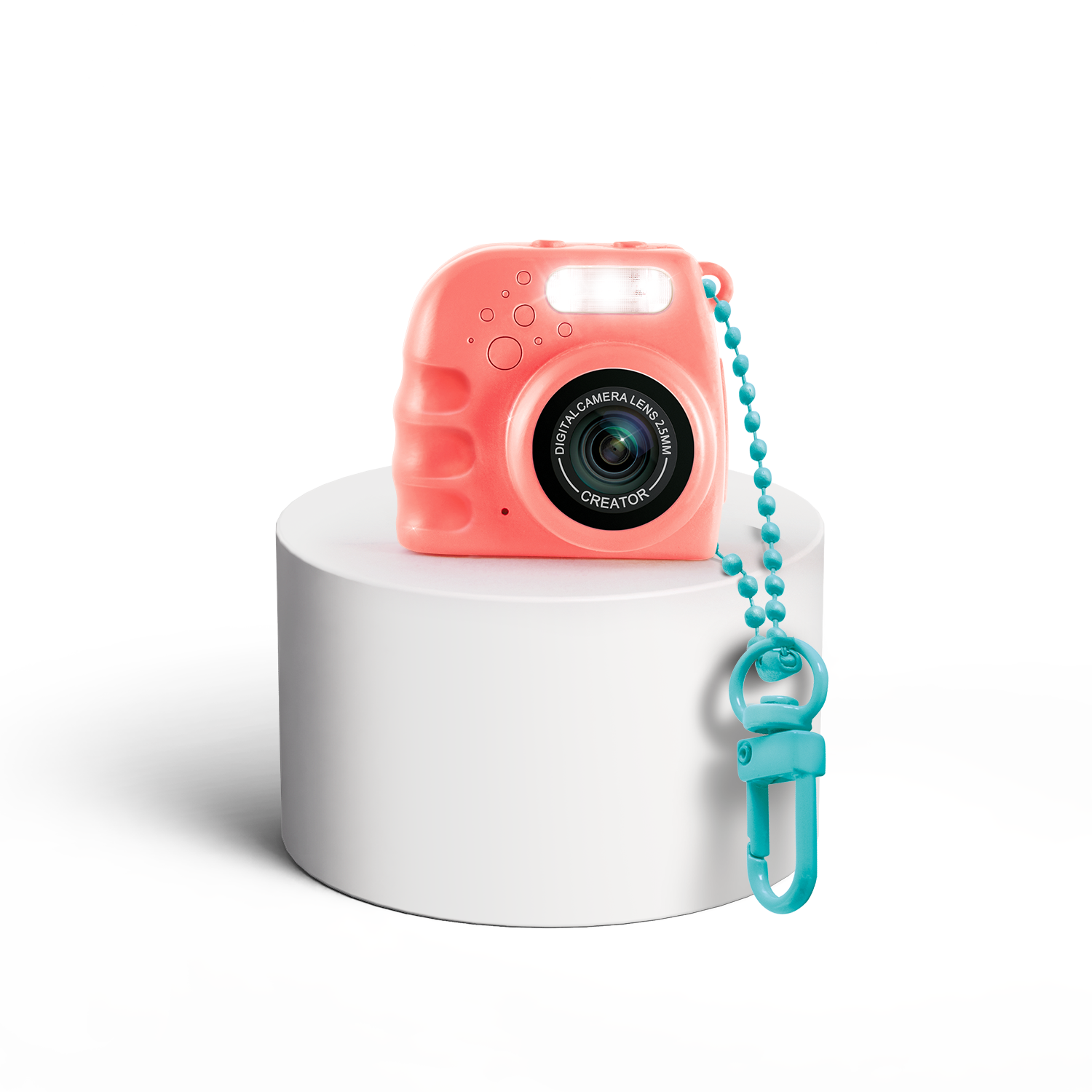 Una moderna mini cámara digital para llevar a todas partes. Engánchala a tu bolso con el llavero y haz fotos y vídeos en cualquier momento y lugar. Incluye una mini pantalla, filtros de color y una tarjeta de memoria de 1 Gb. 6 estilos diferentes para coleccionar.
