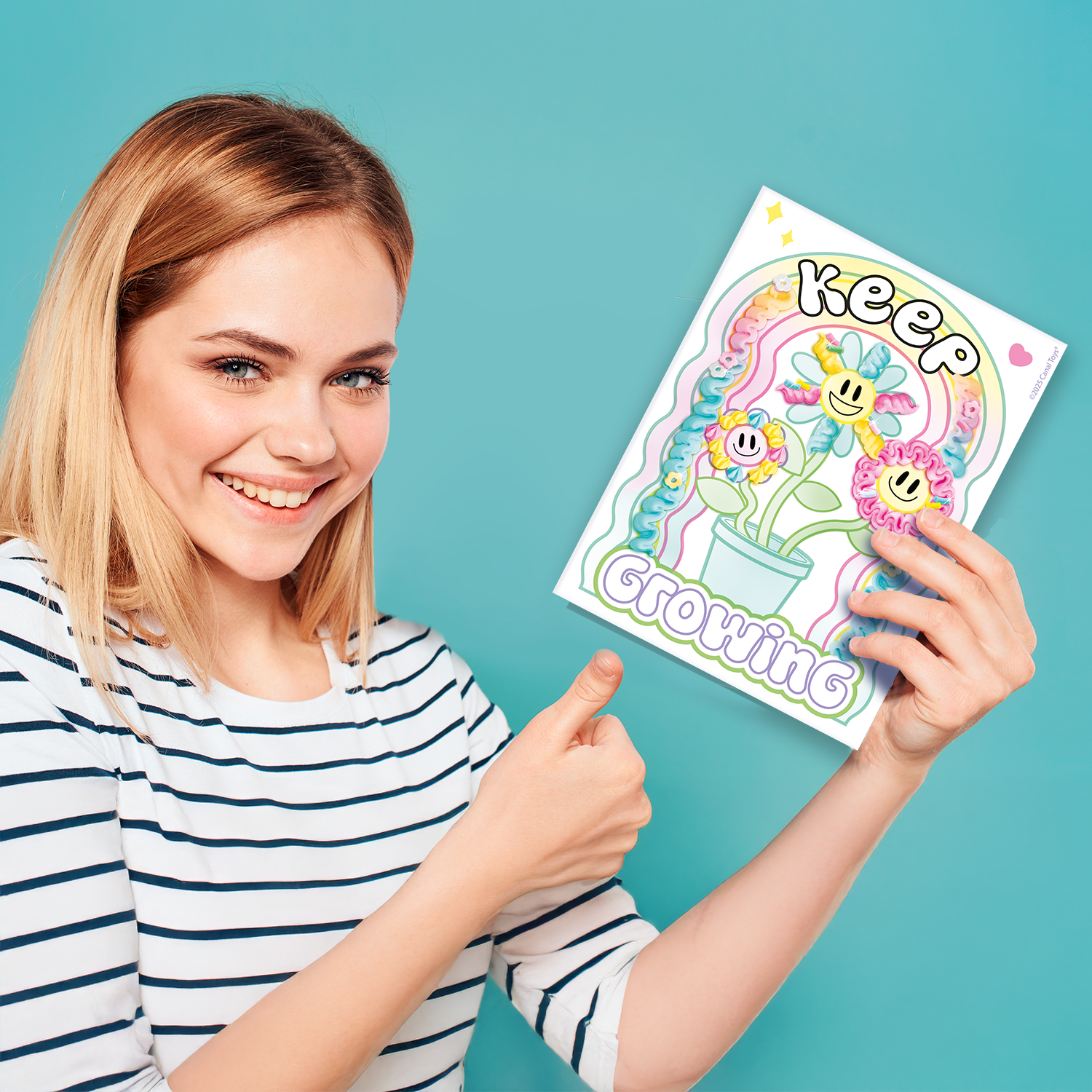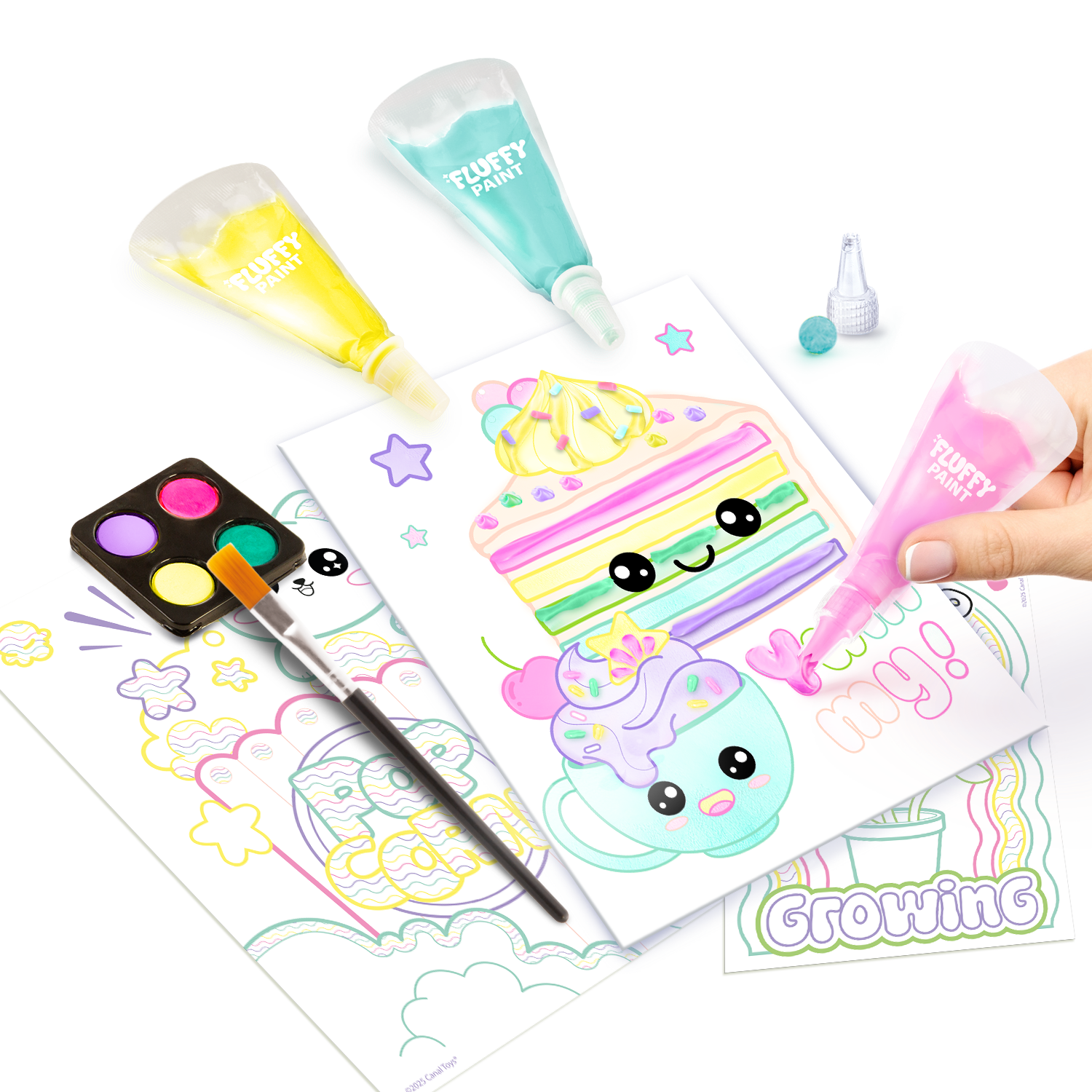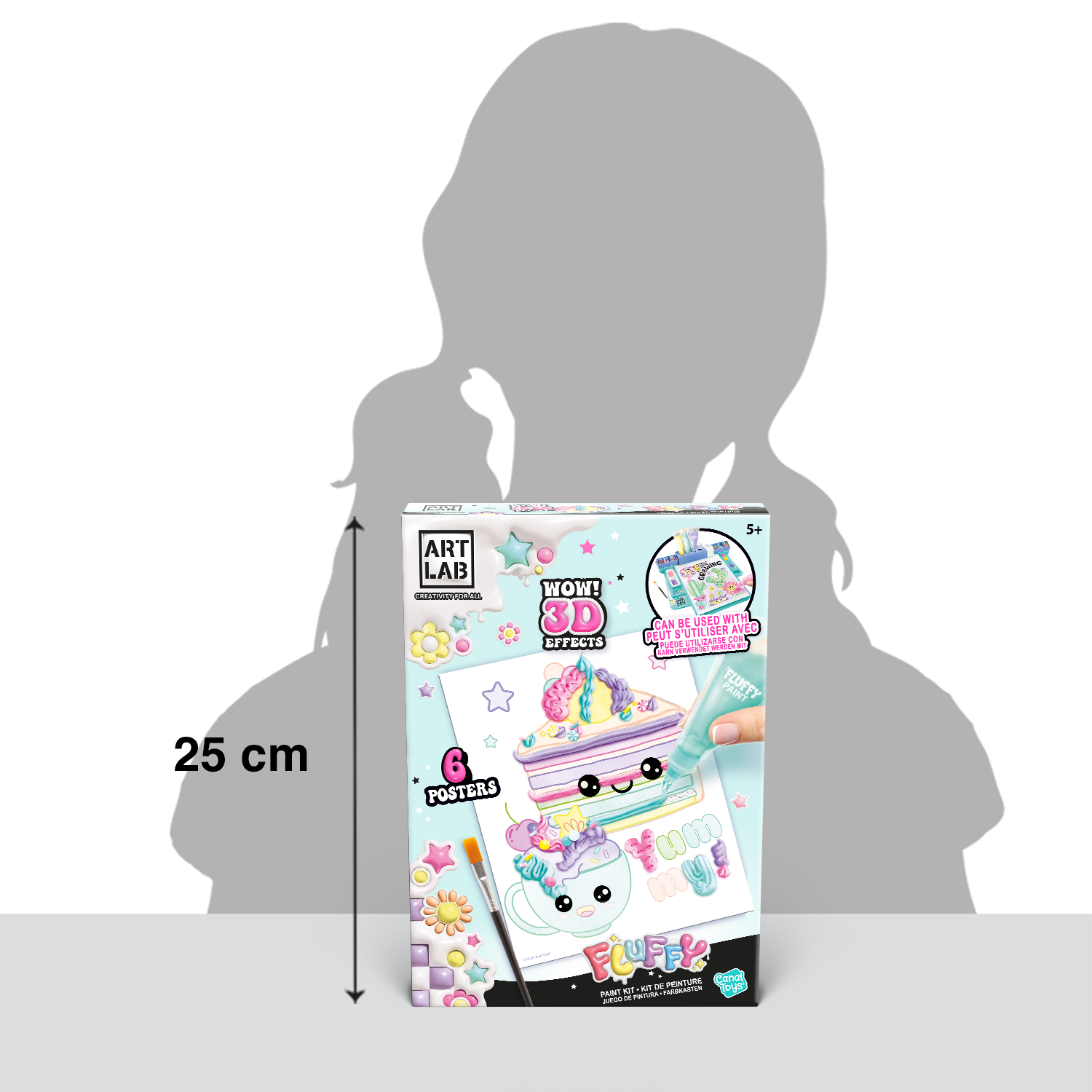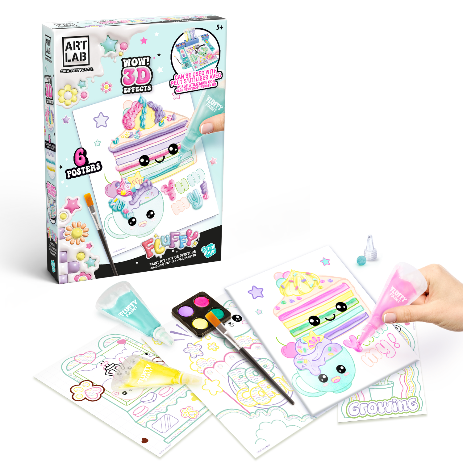 ¡Crea increíbles pinturas en 3D con el kit de pintura Fluffy Paint! Empieza pintando el fondo, selecciona la punta y el color para crear efectos de pintura en 3D en los pósters. ¡Añade decoraciones para que sean aún más divertidos! Todo lo que necesitas para hacer 6 pósters está incluido.