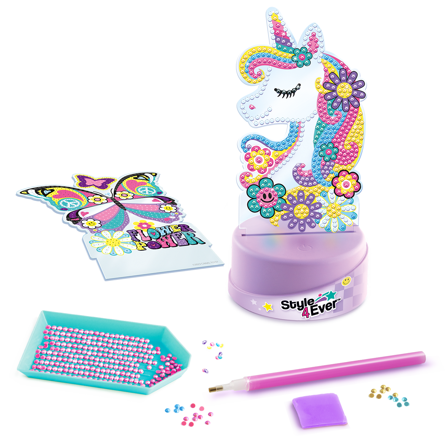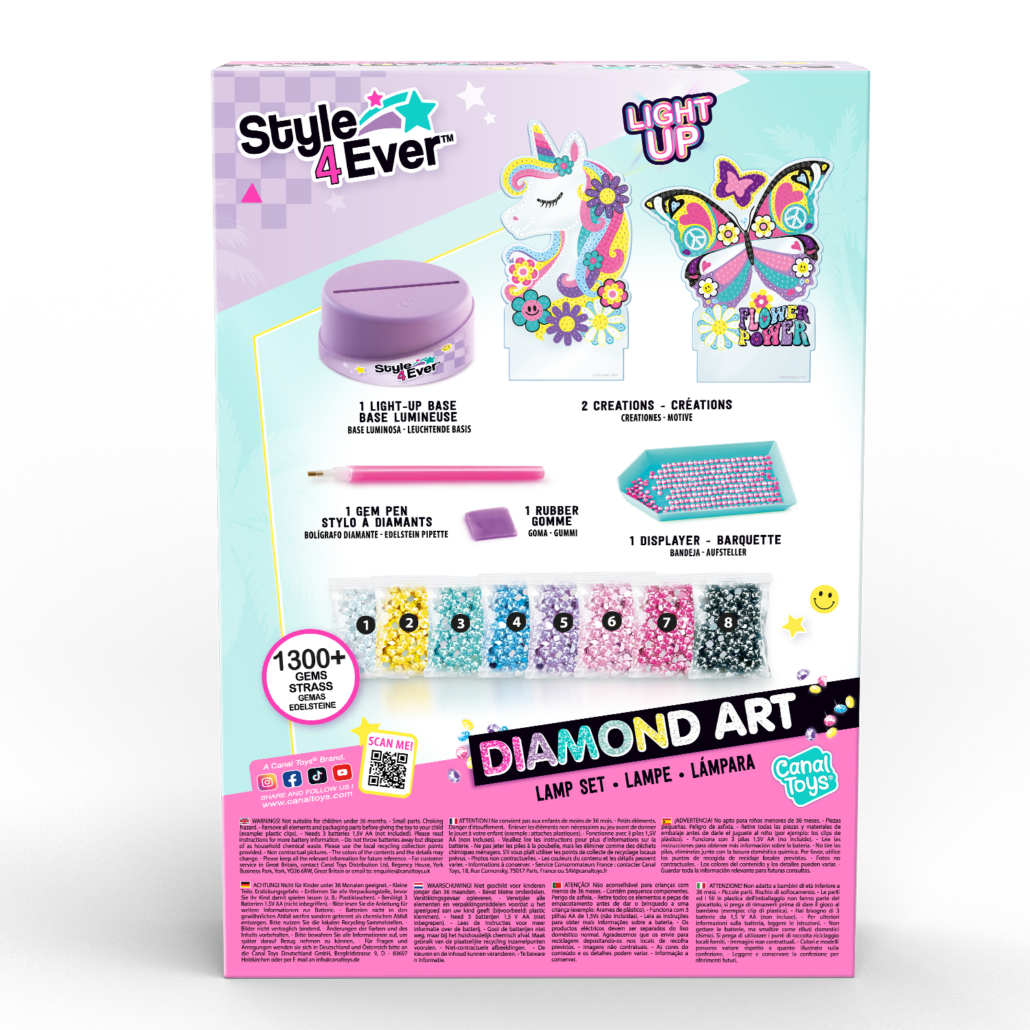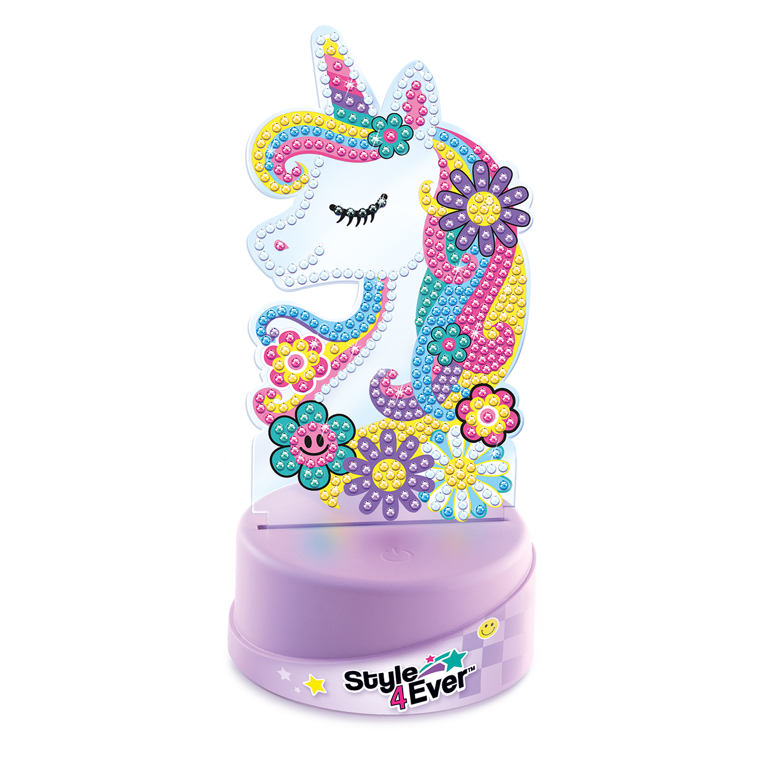 Un set con 2 personajes para decorar con la técnica de pintura de diamantes. Elige tu personaje y coloca las gemas uno a uno siguiendo el diseño. Una vez terminado, ¡colócalo en la base iluminada para que brille en la oscuridad!