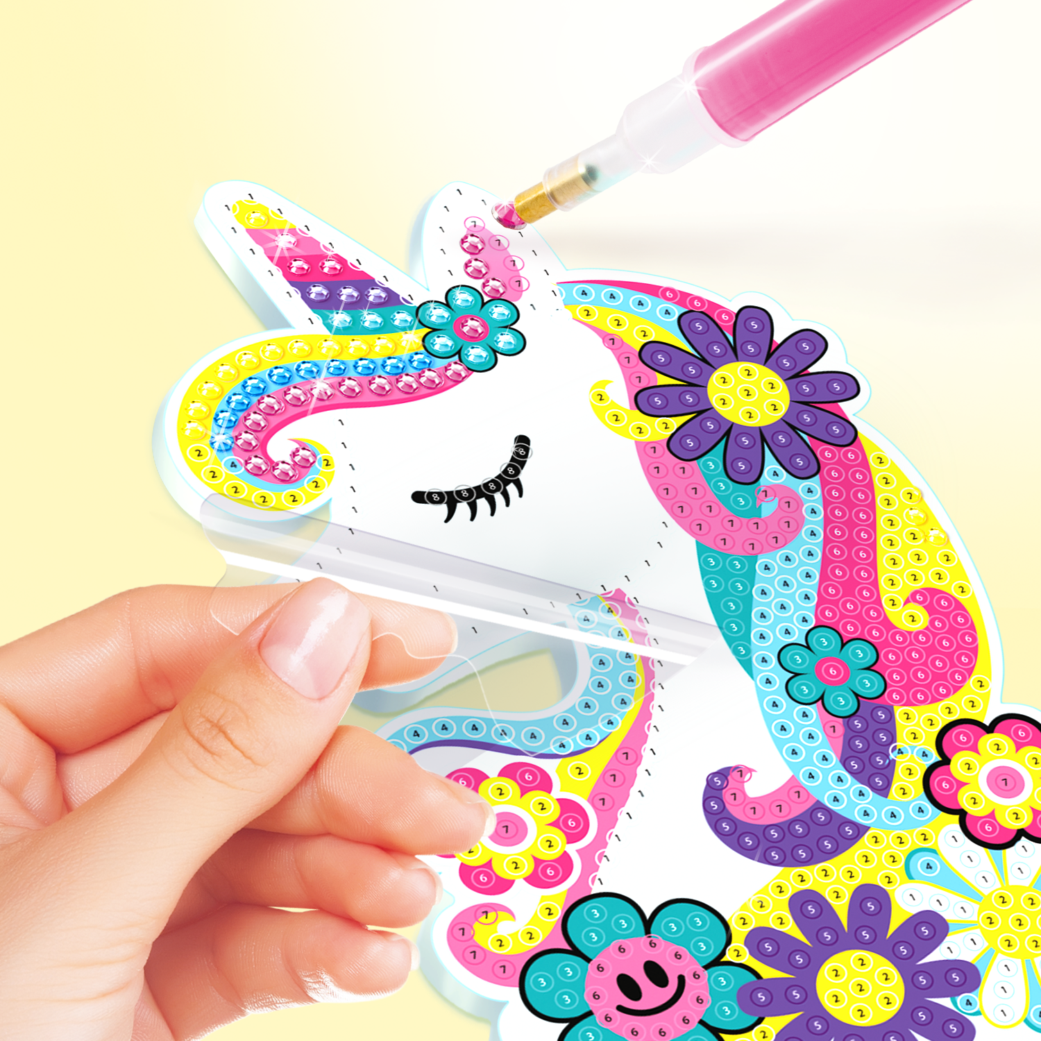 Una actividad creativa, divertida y educativa. Incluye todos los accesorios necesarios para la técnica de pintura del diamante: rotulador diamante, expositor y cera. Coloca las gemas dentro del expositor, aplica cera en la punta del bolígrafo, ¡recoge y coloca los gemas una a una!