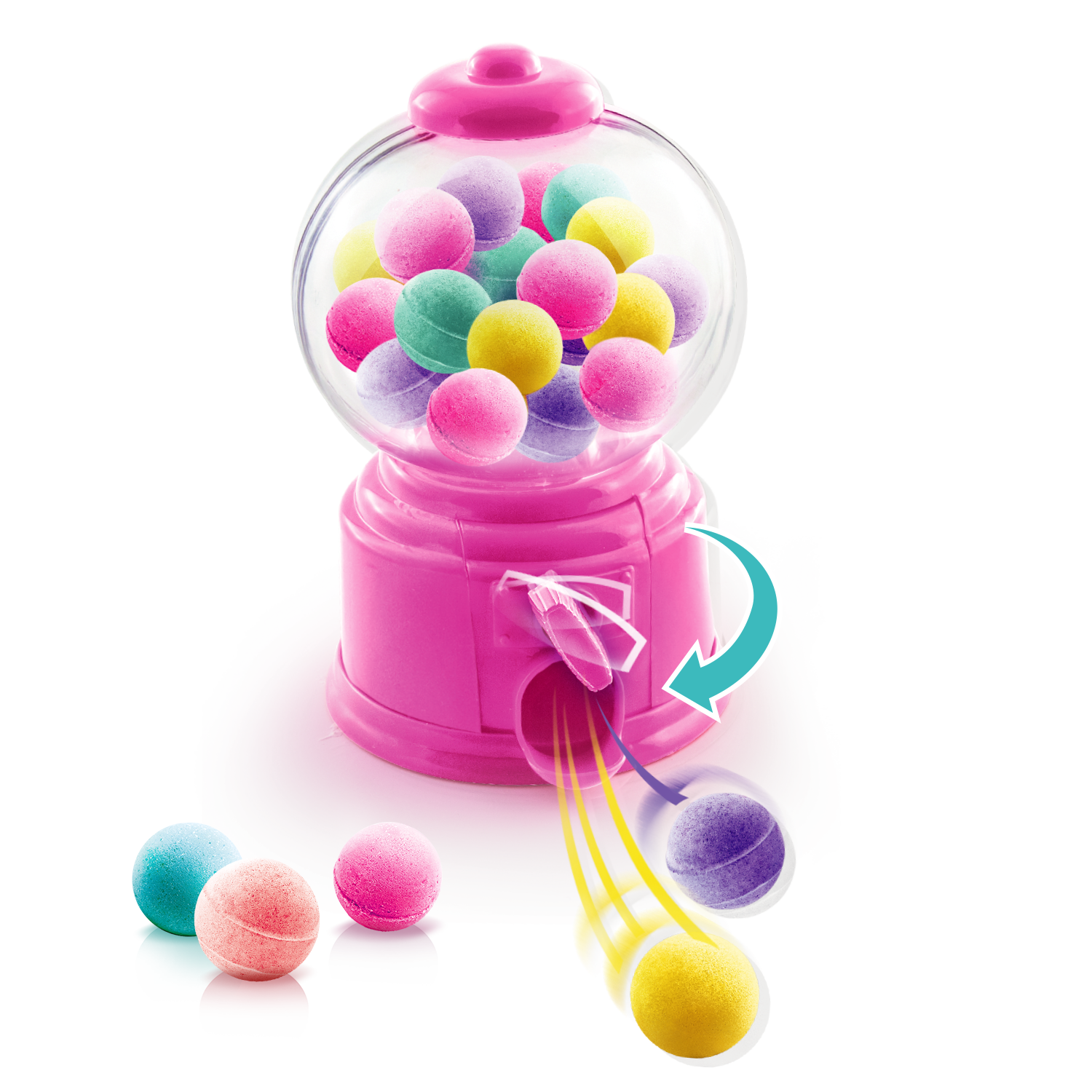 ¡Qué chulo es este dispensador de bombas de baño! Gira el asa para dejar caer la mini bomba de baño. Una vez terminada la bomba de baño, ¡descubre los colgantes sorpresa! Colecciónalos todos.