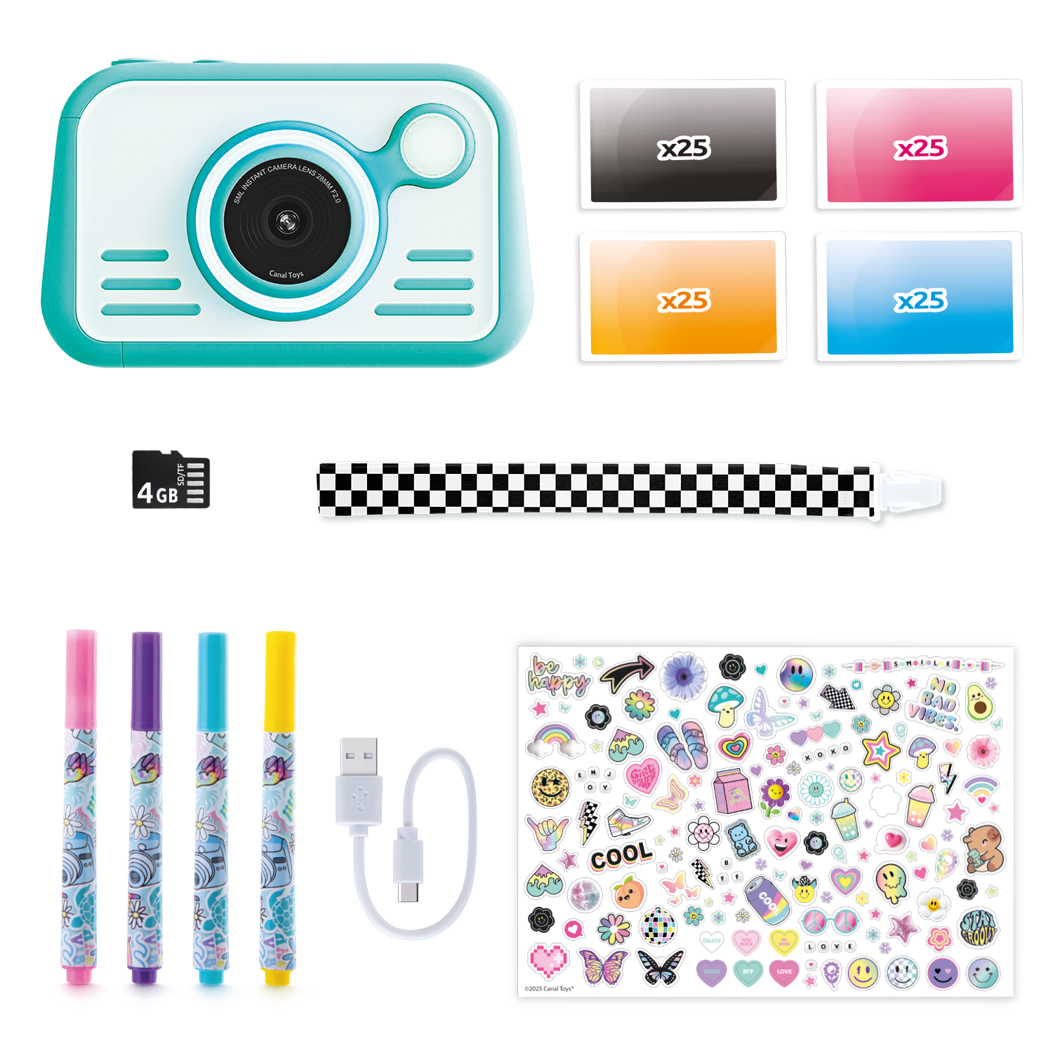 - 100 hojas de papel fotográfico - 4 marcadores y 1 hoja de calcomanías