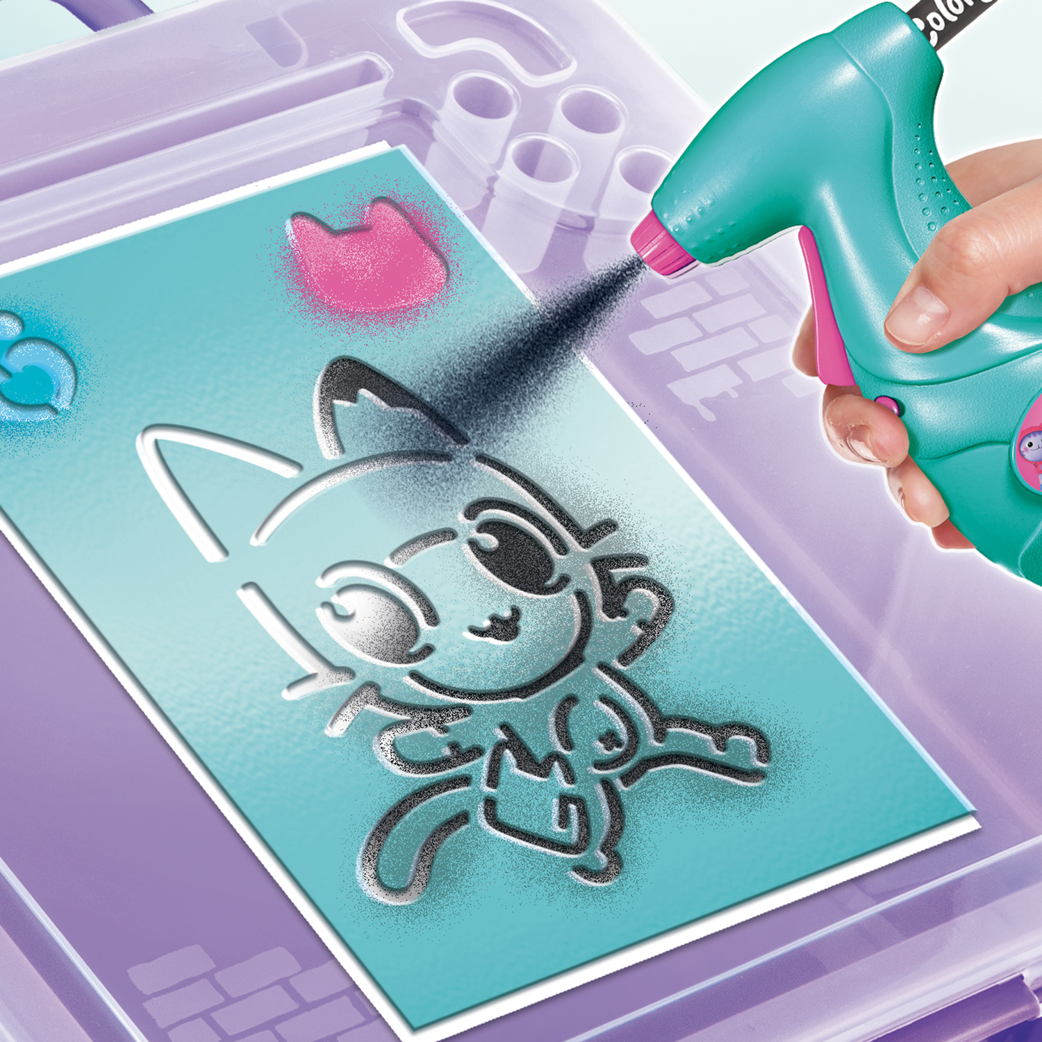 Contiene todo lo que necesitas para crear diseños únicos con Aerógrafo: spray electrónico, rotuladores, plantillas, hojas de dibujo...