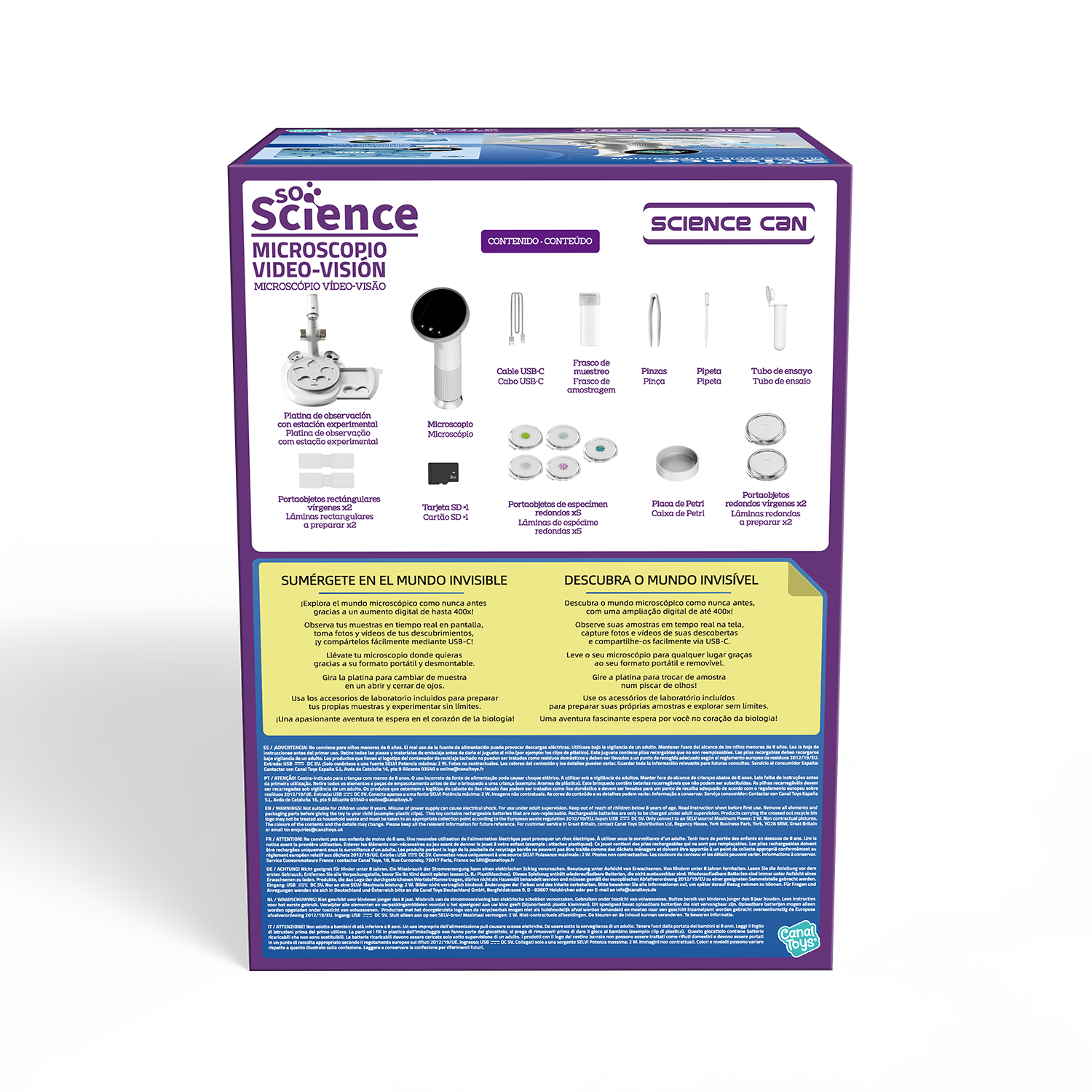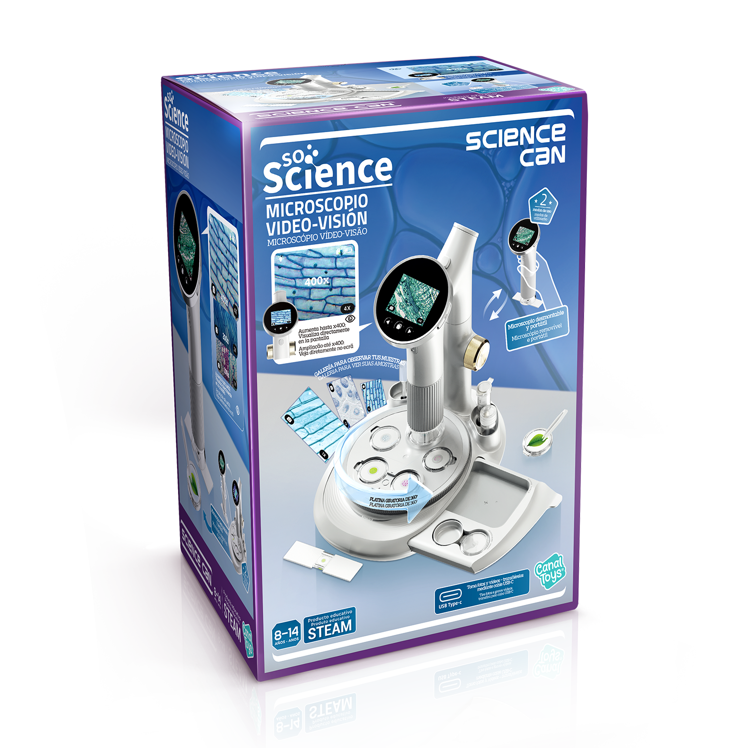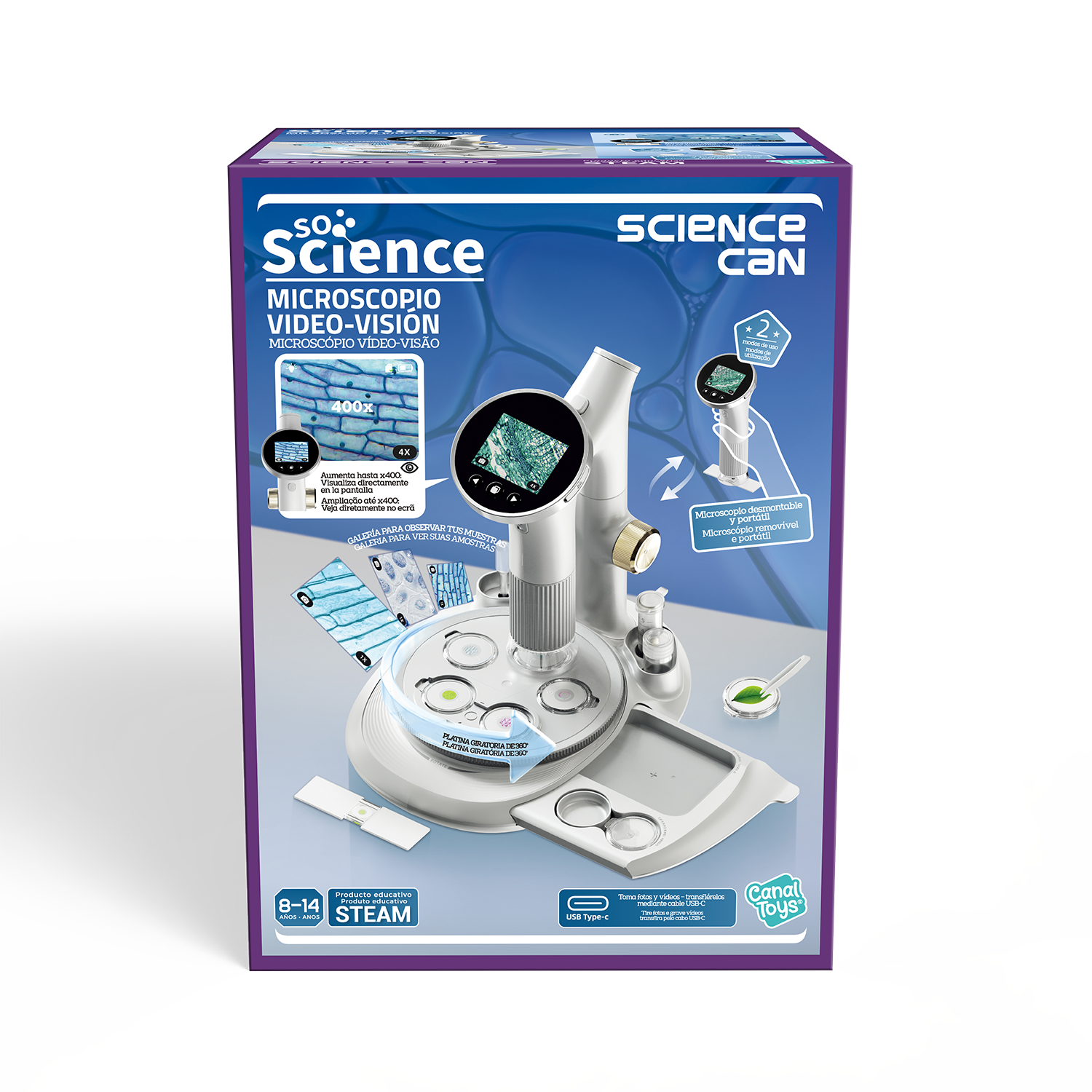 Explora el mundo invisible con este microscopio eléctrico portátil con base giratoria y pantalla integrada. Haz zoom de hasta 400x, captura fotos y vídeos, transfiérelos por USB-C y comparte fácilmente tus descubrimientos en smartphones, tabletas o PC.