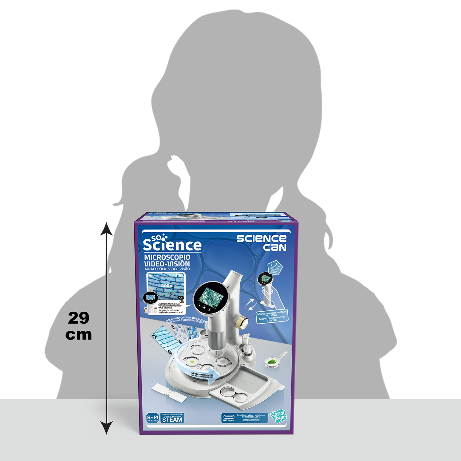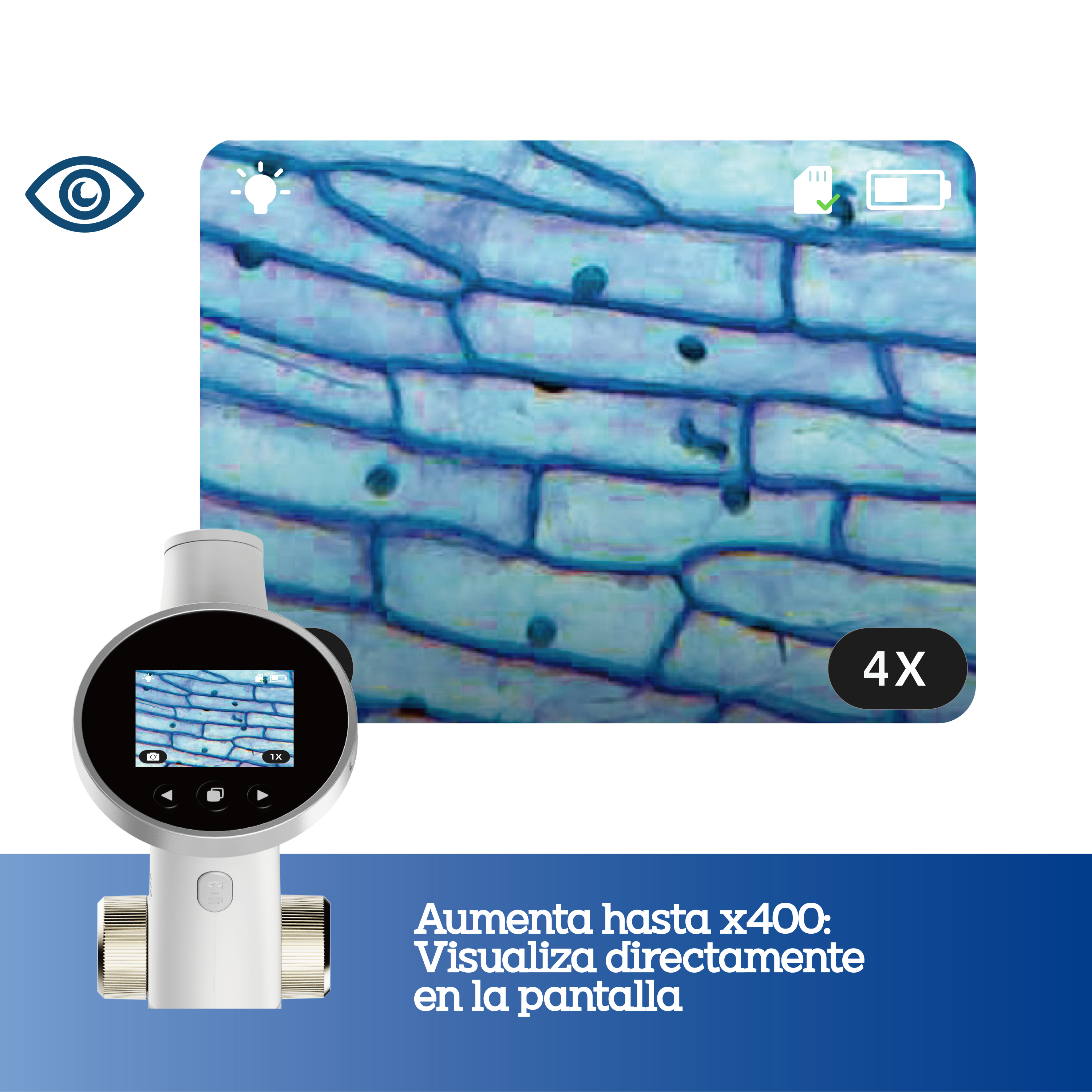 ¡Descubre las células y cosas más pequeñas a través de una pantalla con hasta 1000 aumentos!
