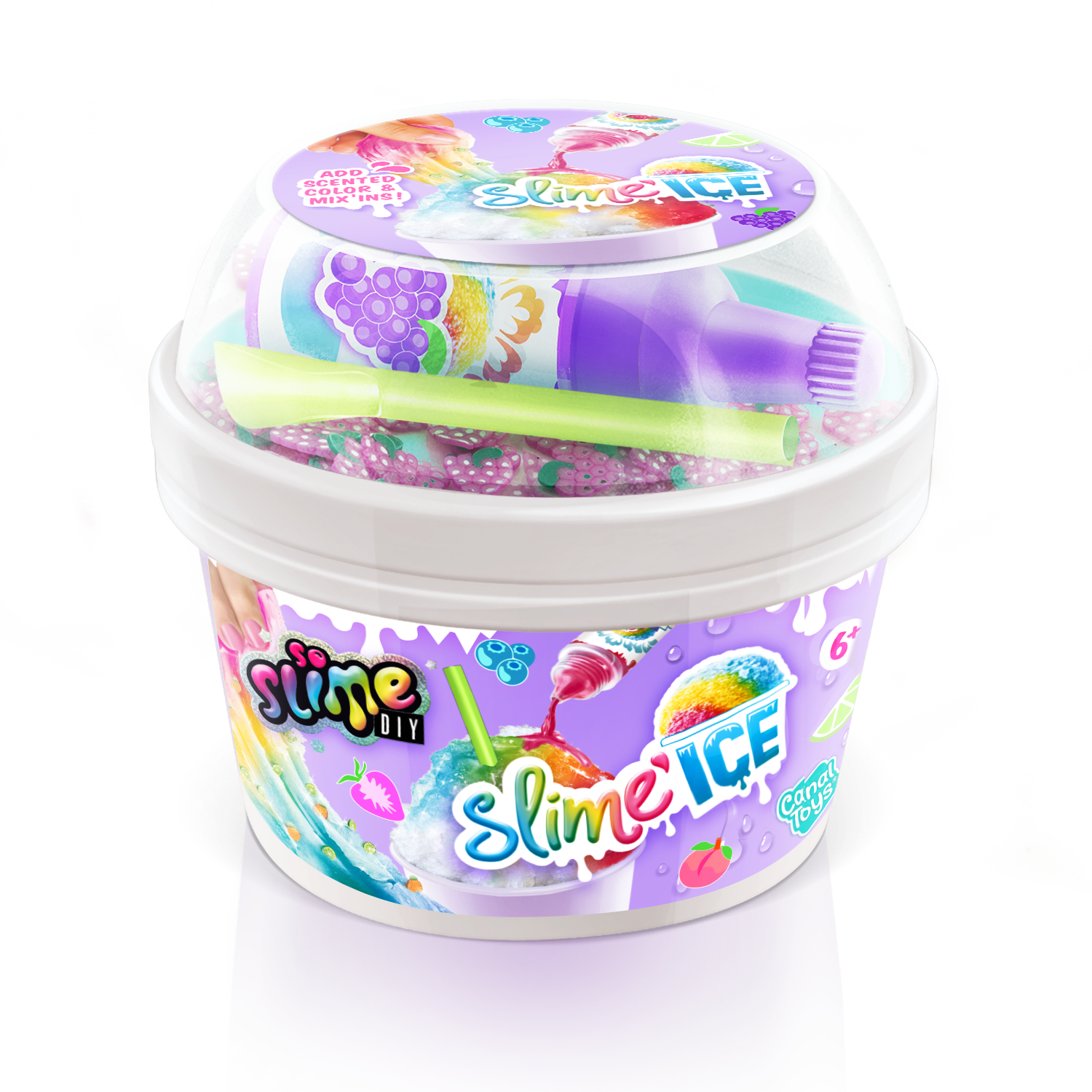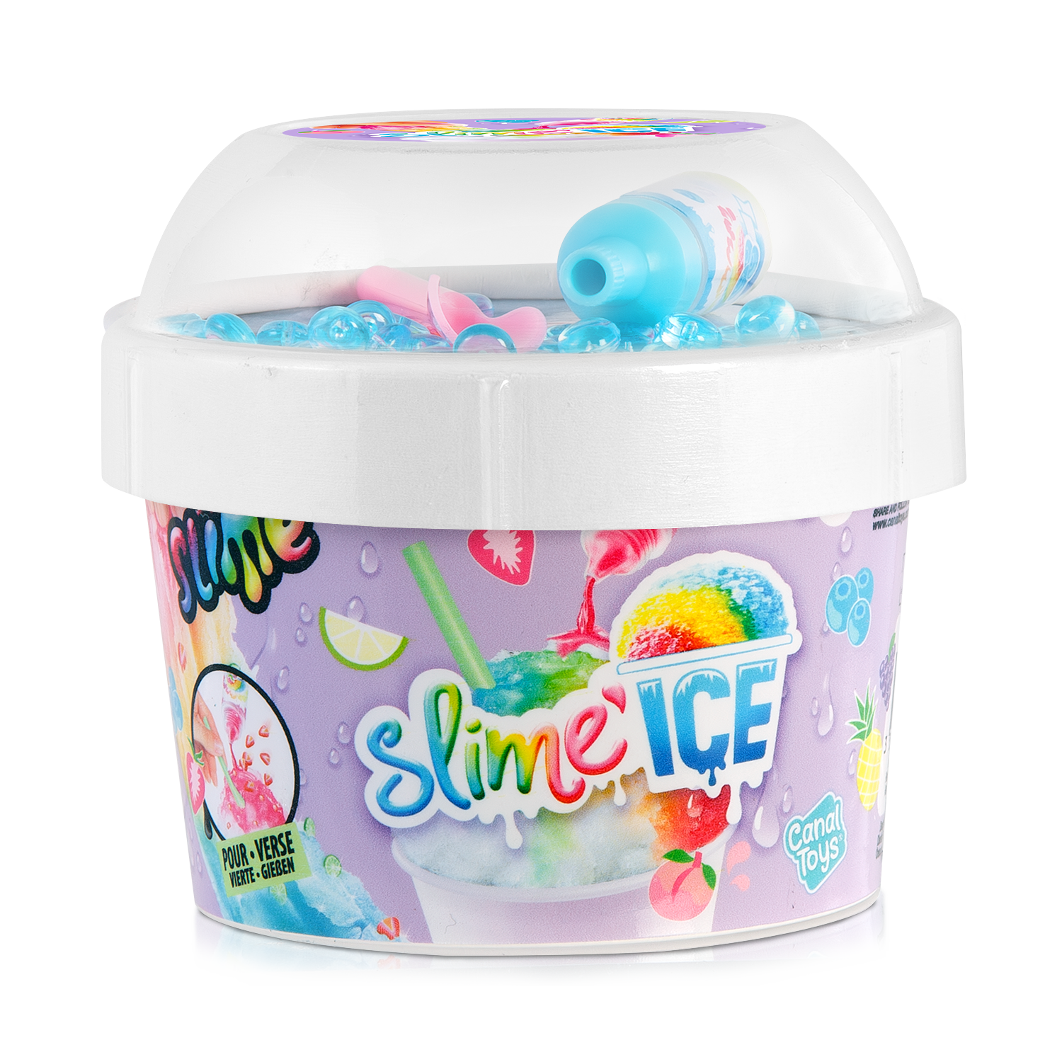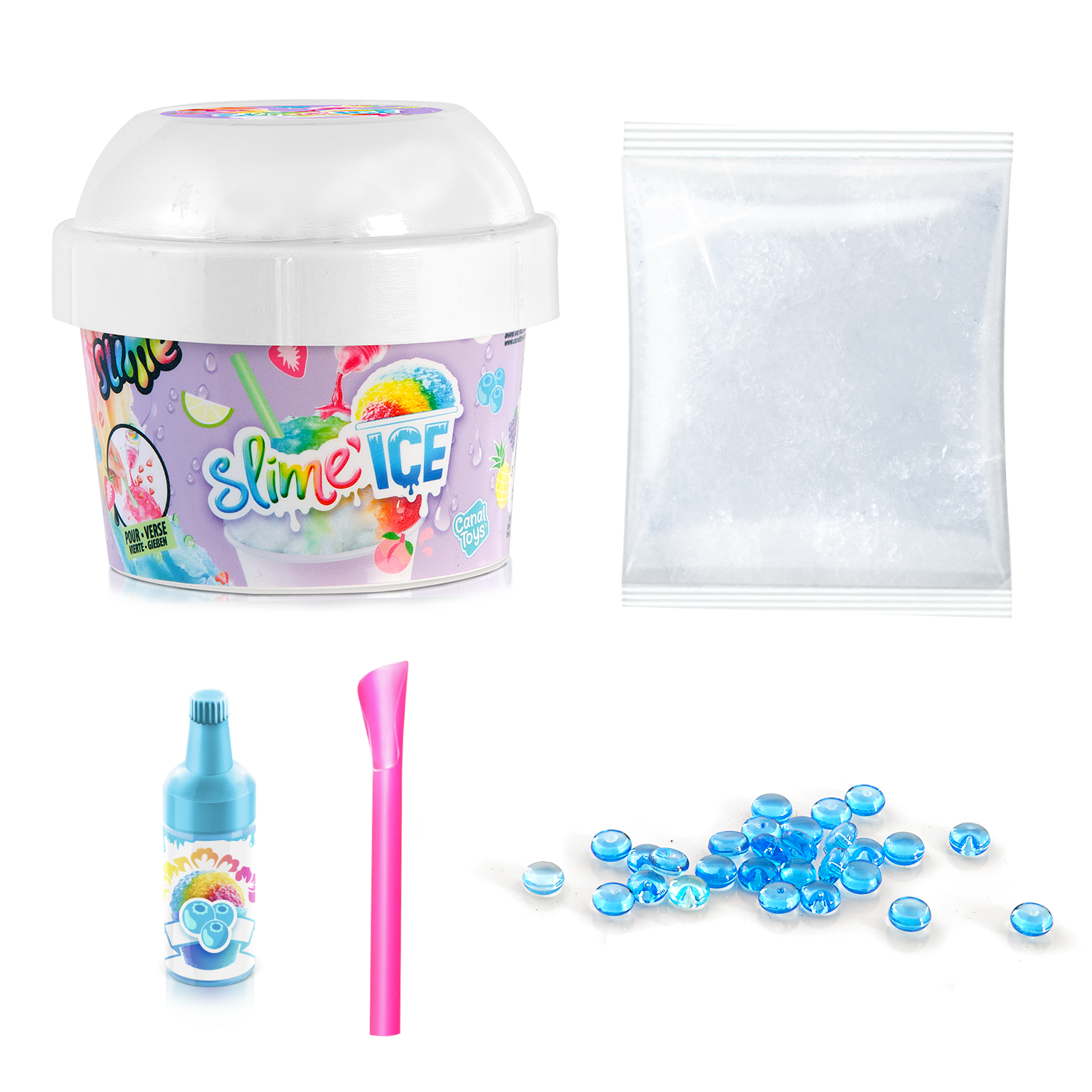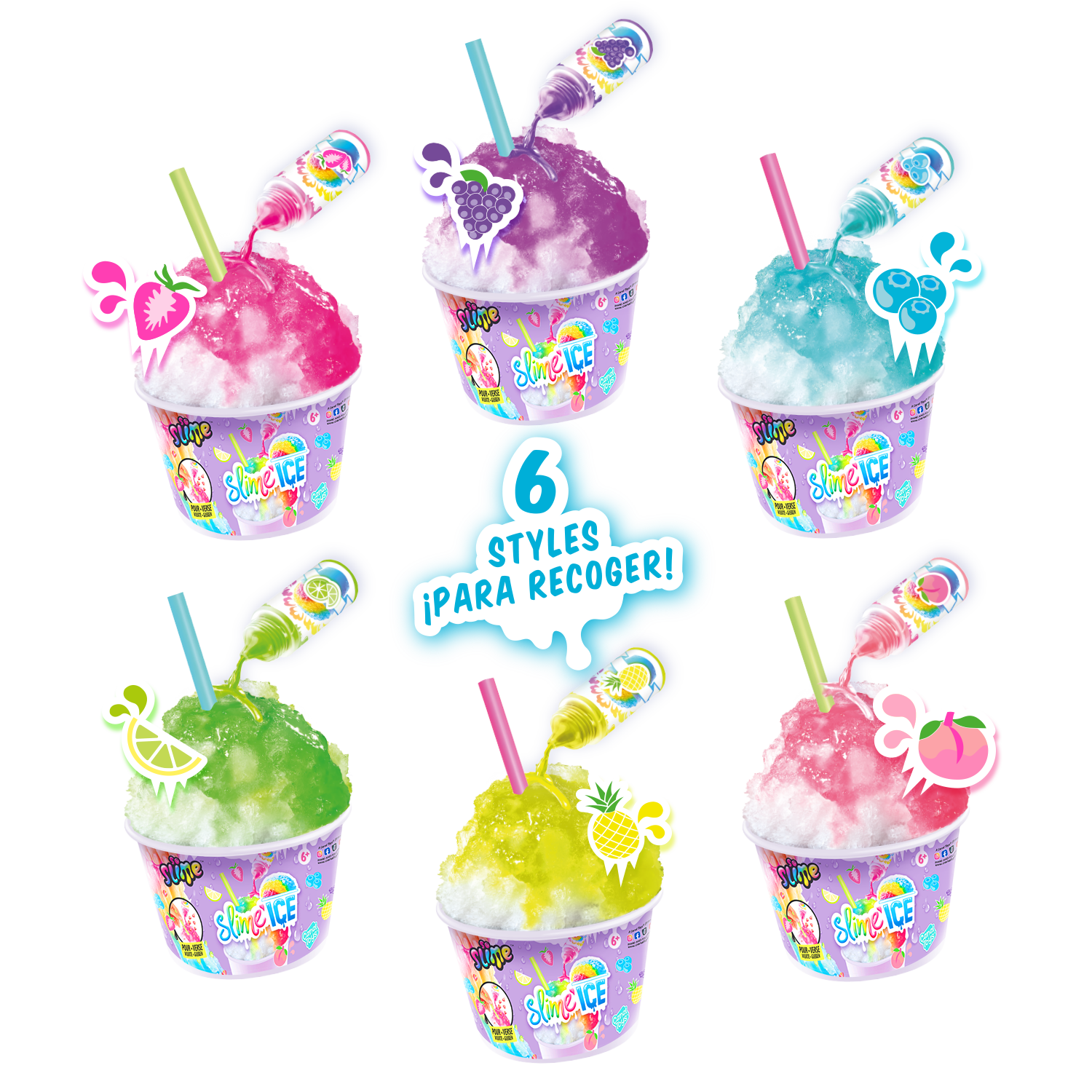 ¡Descubre en tu vaso de Slime Ice todo lo que necesitas para hacer helados coloridos y divertidos! Añade tu colorante perfumado, mezcla materiales y decoraciones ¡y añade tu pajita! ¡Dulces vibraciones veraniegas! 6 estilos para coleccionar.