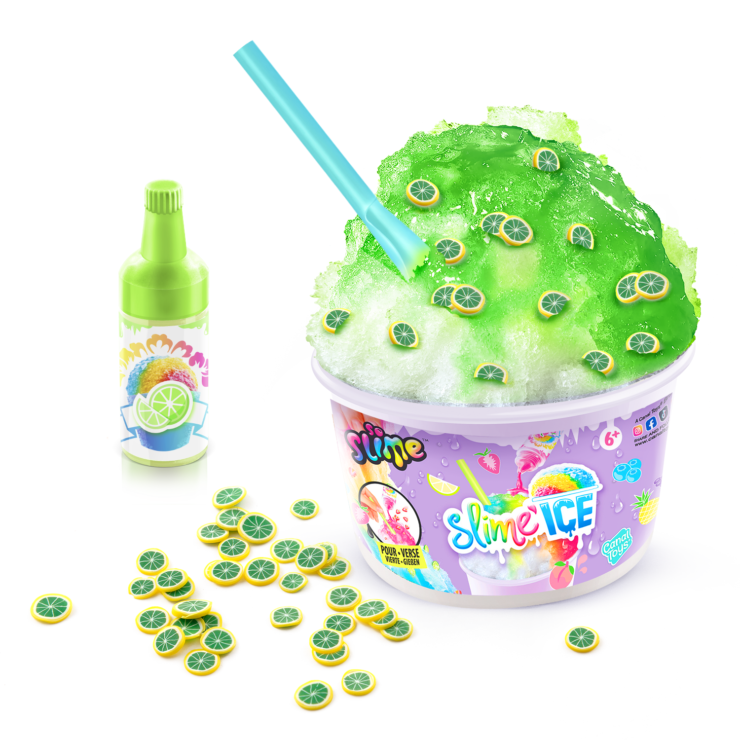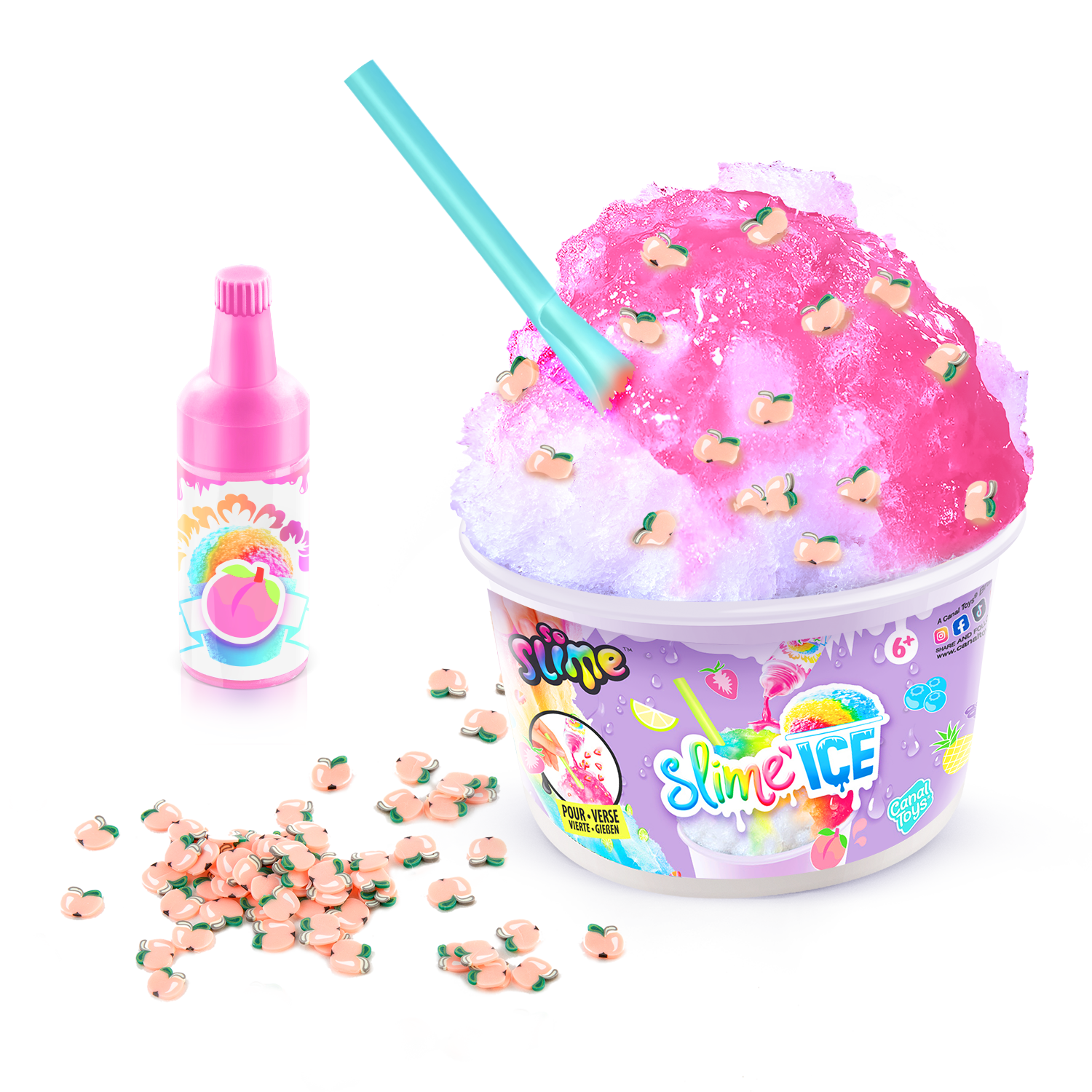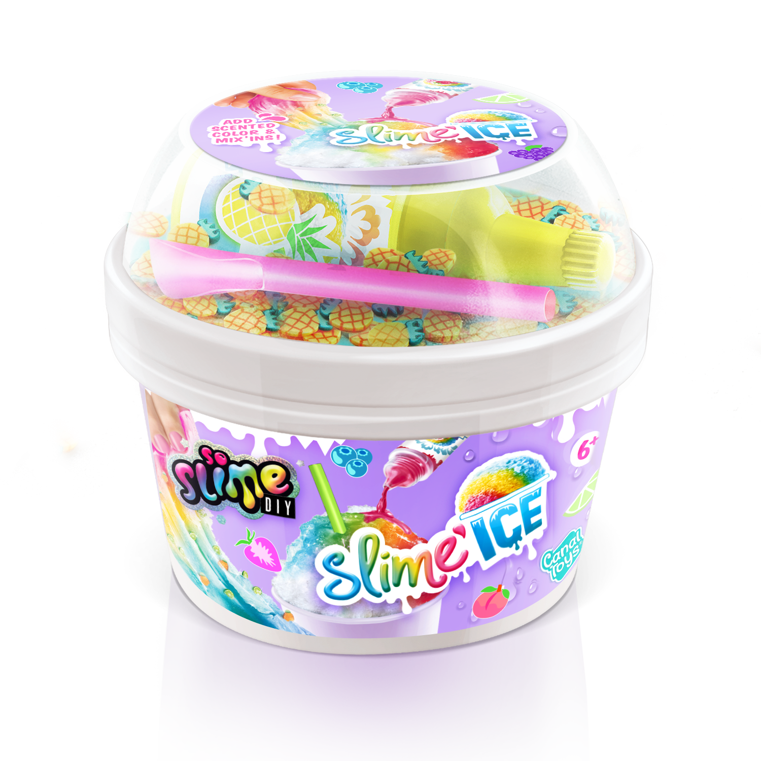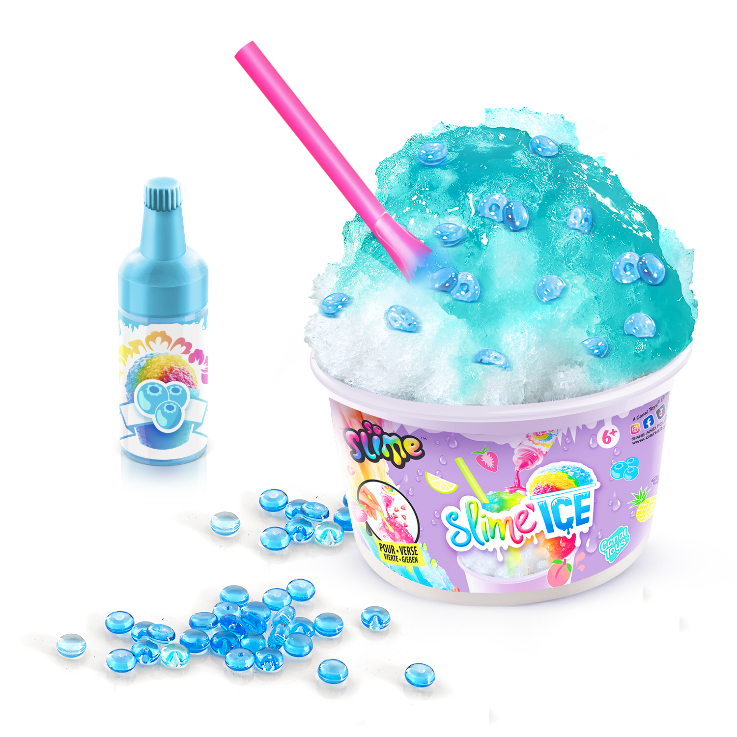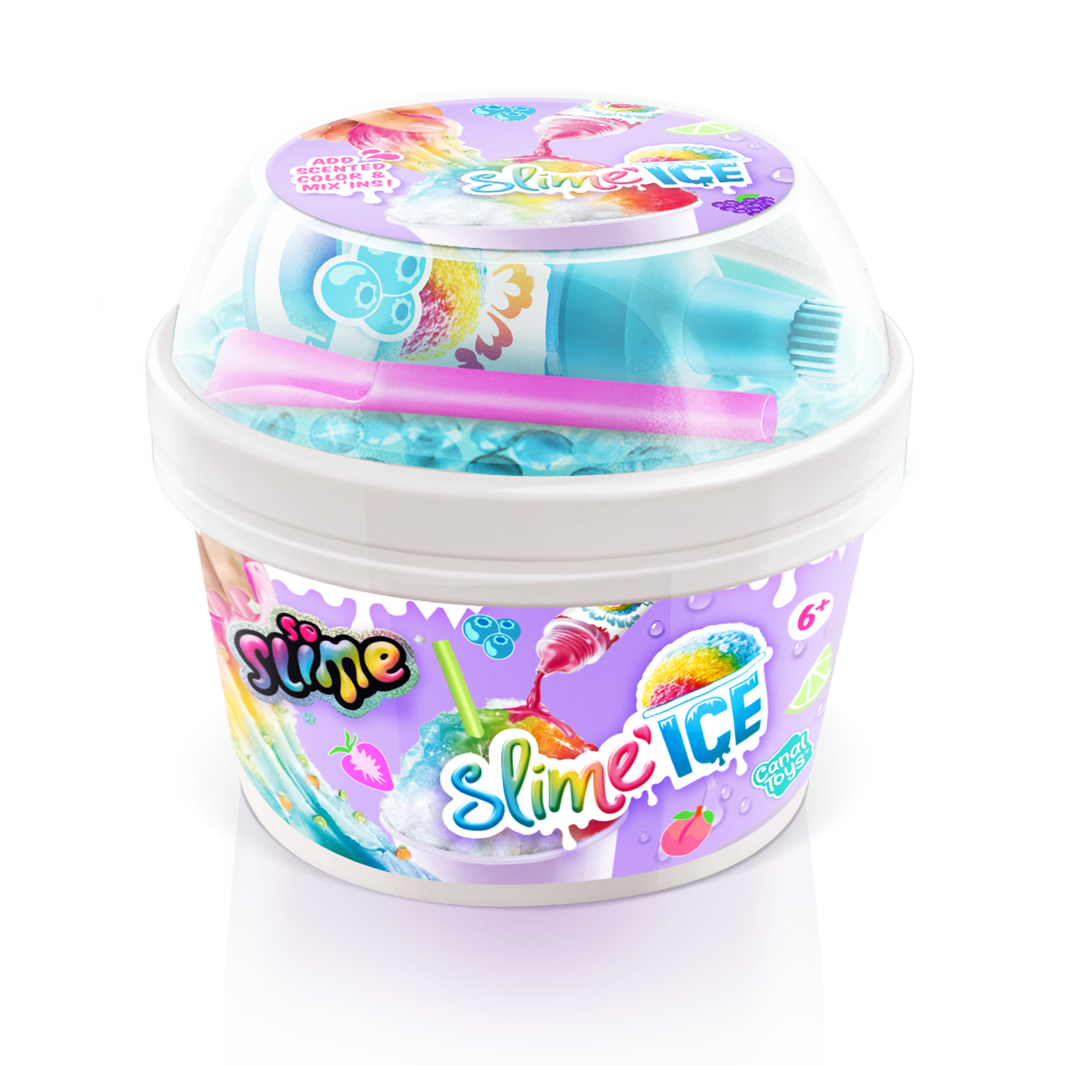 ¡Descubre en tu vaso de Slime Ice todo lo que necesitas para hacer helados coloridos y divertidos! Añade tu colorante perfumado, mezcla materiales y decoraciones ¡y añade tu pajita! ¡Dulces vibraciones veraniegas! 6 estilos para coleccionar.