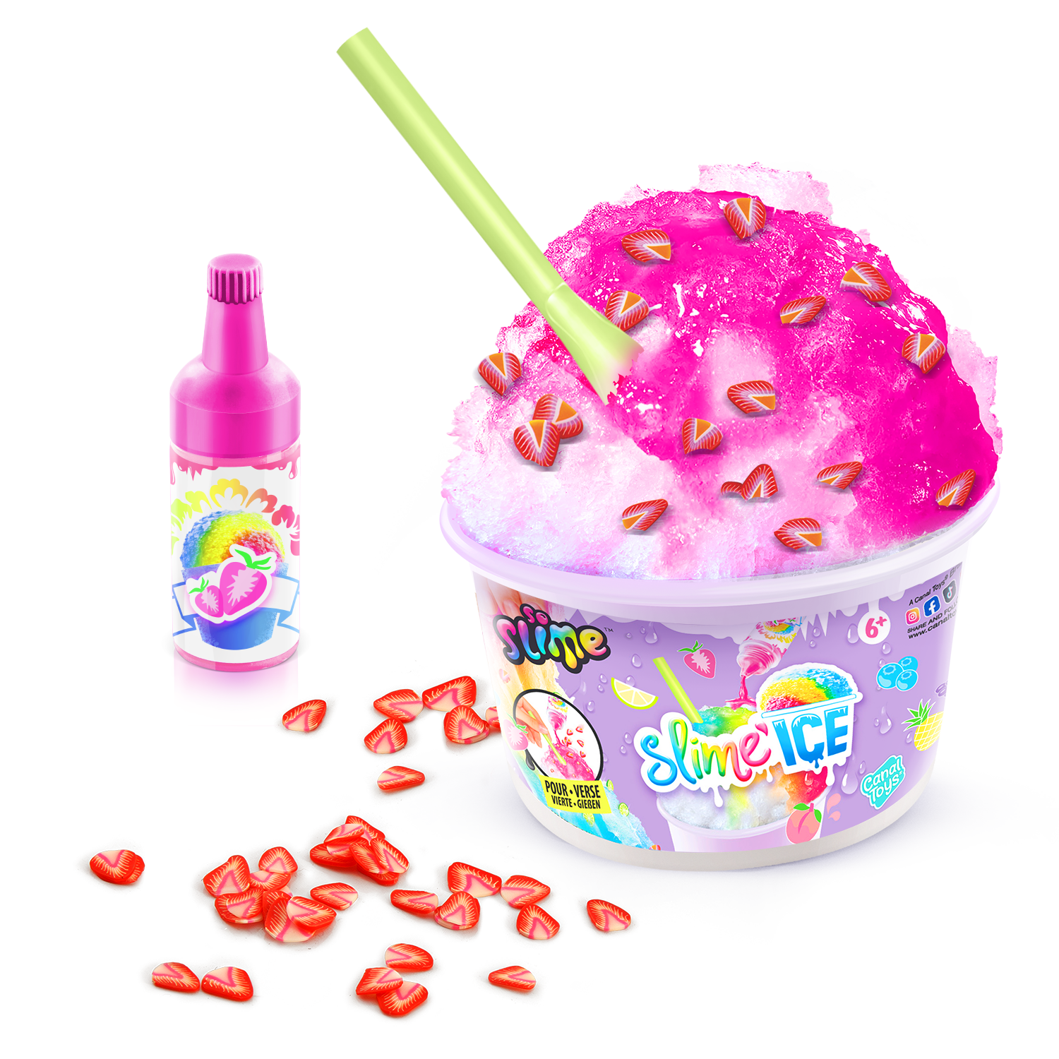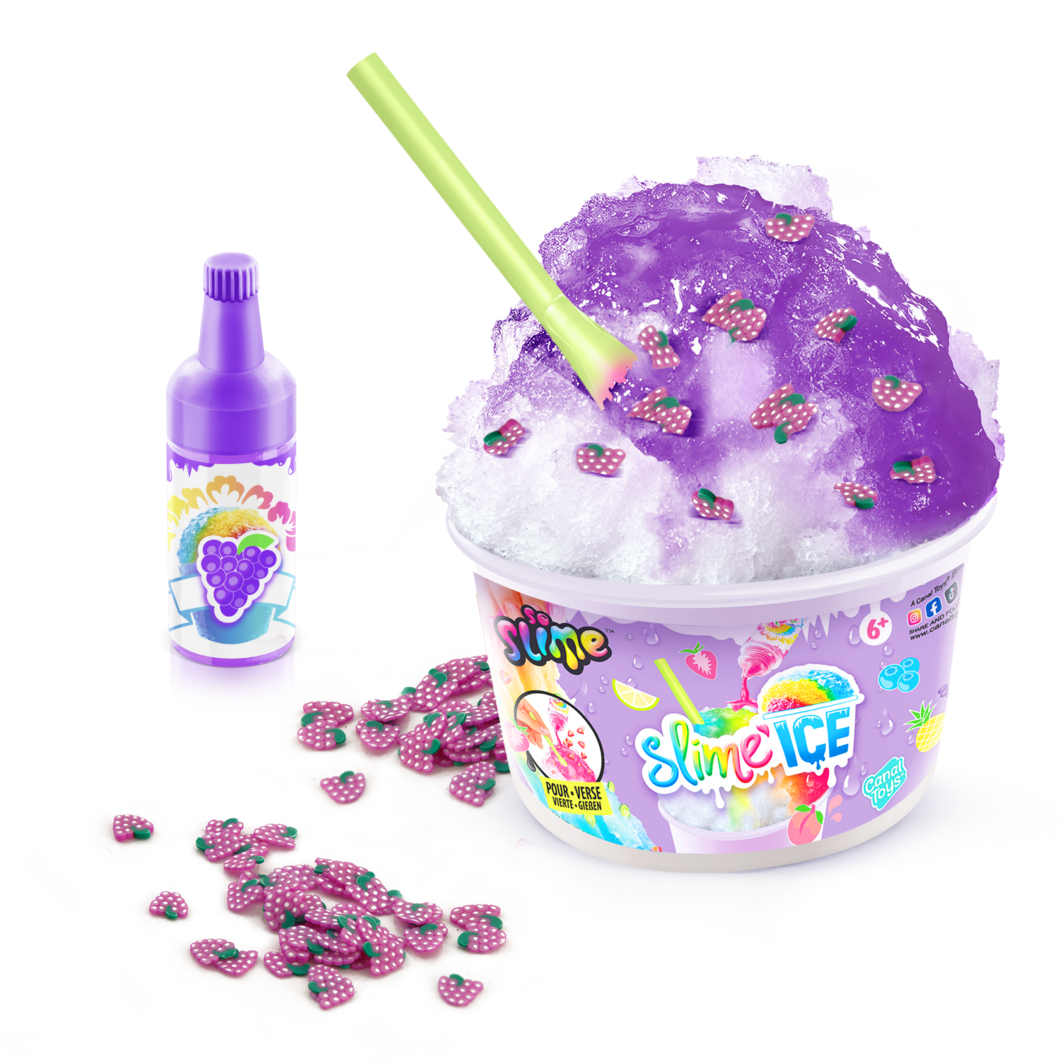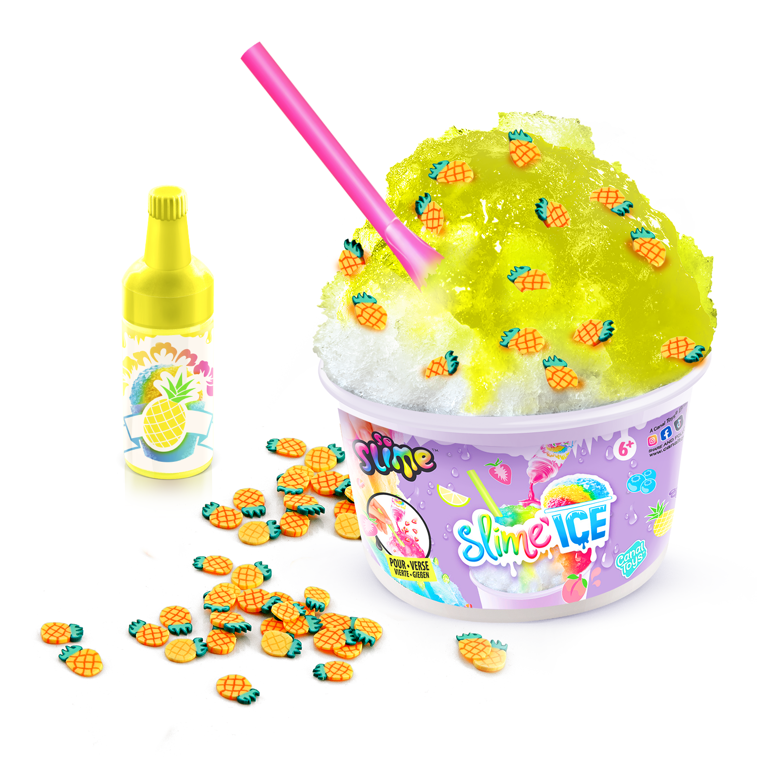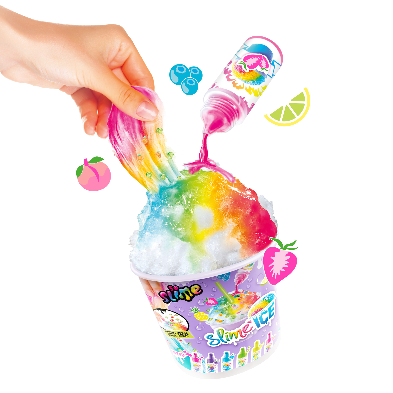 ¡Descubre en tu vaso de Slime Ice todo lo que necesitas para hacer helados coloridos y divertidos! Añade tu colorante perfumado, mezcla materiales y decoraciones ¡y añade tu pajita! ¡Dulces vibraciones veraniegas! 6 estilos para coleccionar.