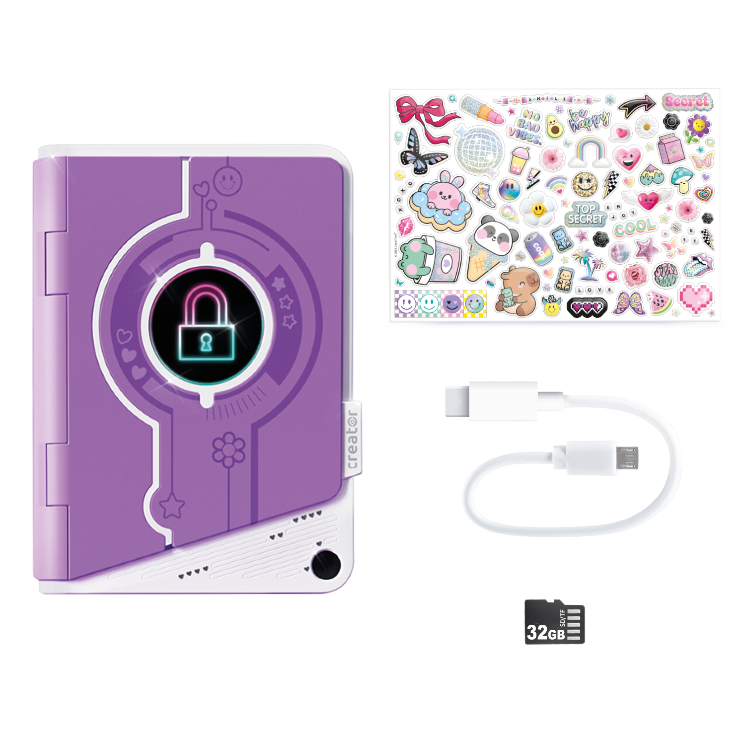 -1 Diario de vídeo - 1 Cable USB-C - 1 Tarjeta SD 32Gb - 1 Hoja de adhesivos -1 Manual de instrucciones