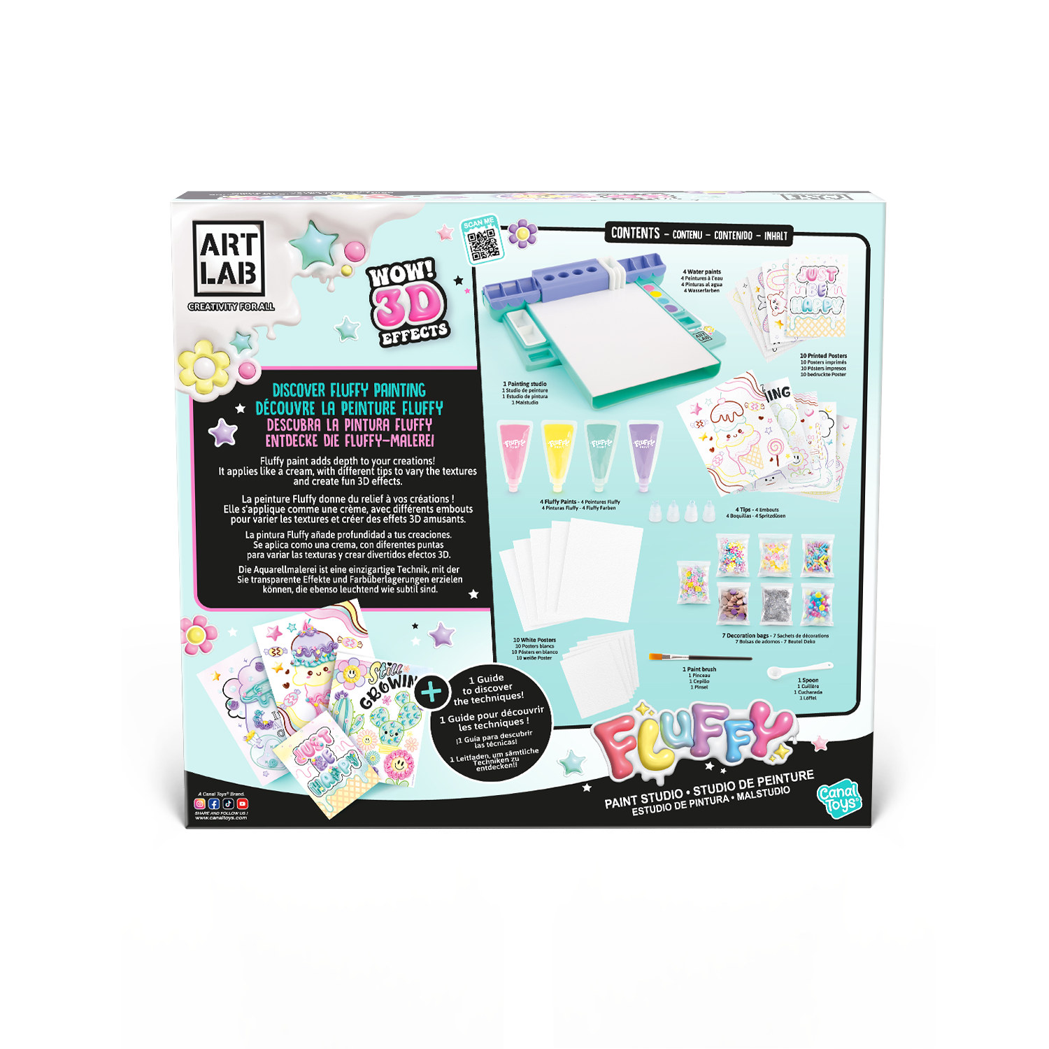 - UNA TÉCNICA DOBLE PARA UNA DIVERSIÓN AÚN MAYOR: Empiece pintando el fondo del póster con pintura al agua y, a continuación, aplique pintura Fluffy en las zonas recomendadas para obtener un efecto 3D sorprendente.