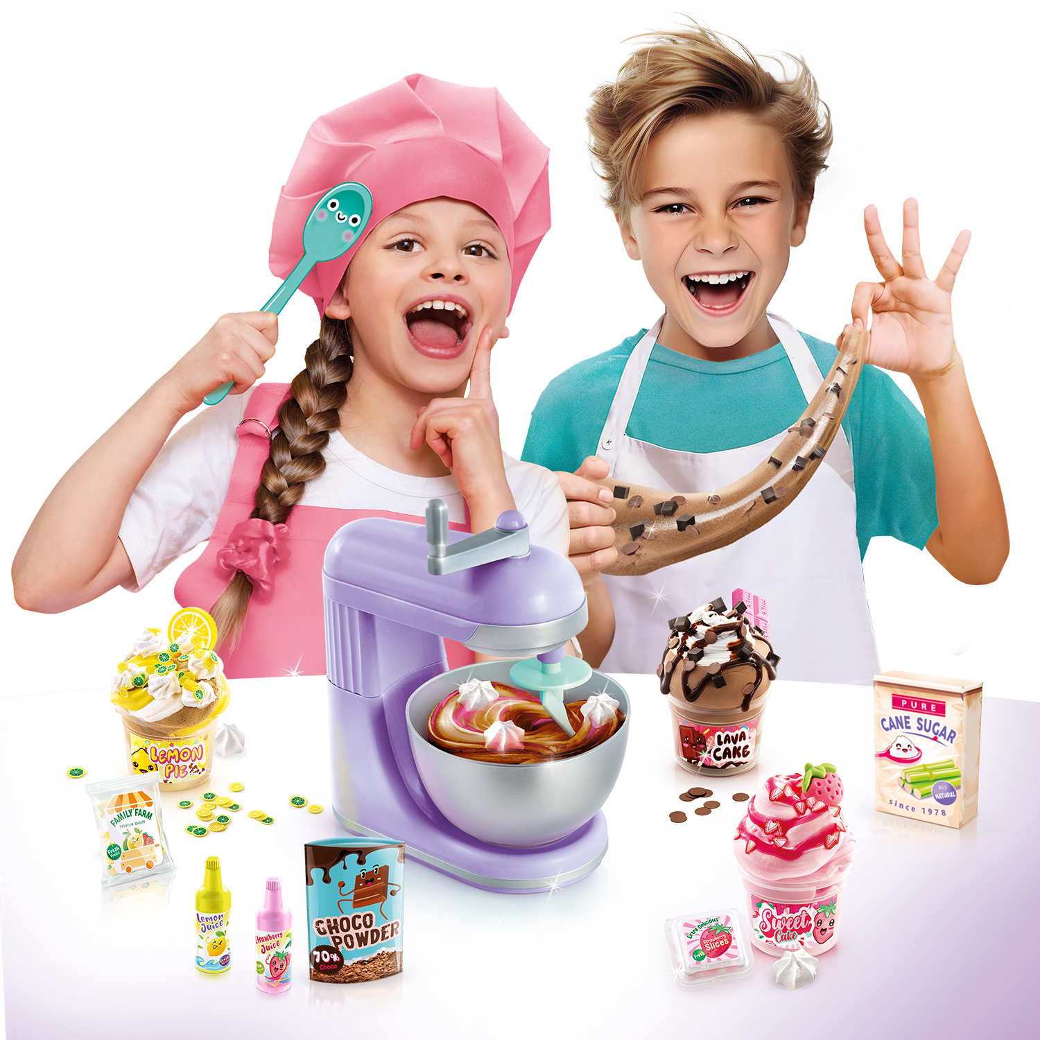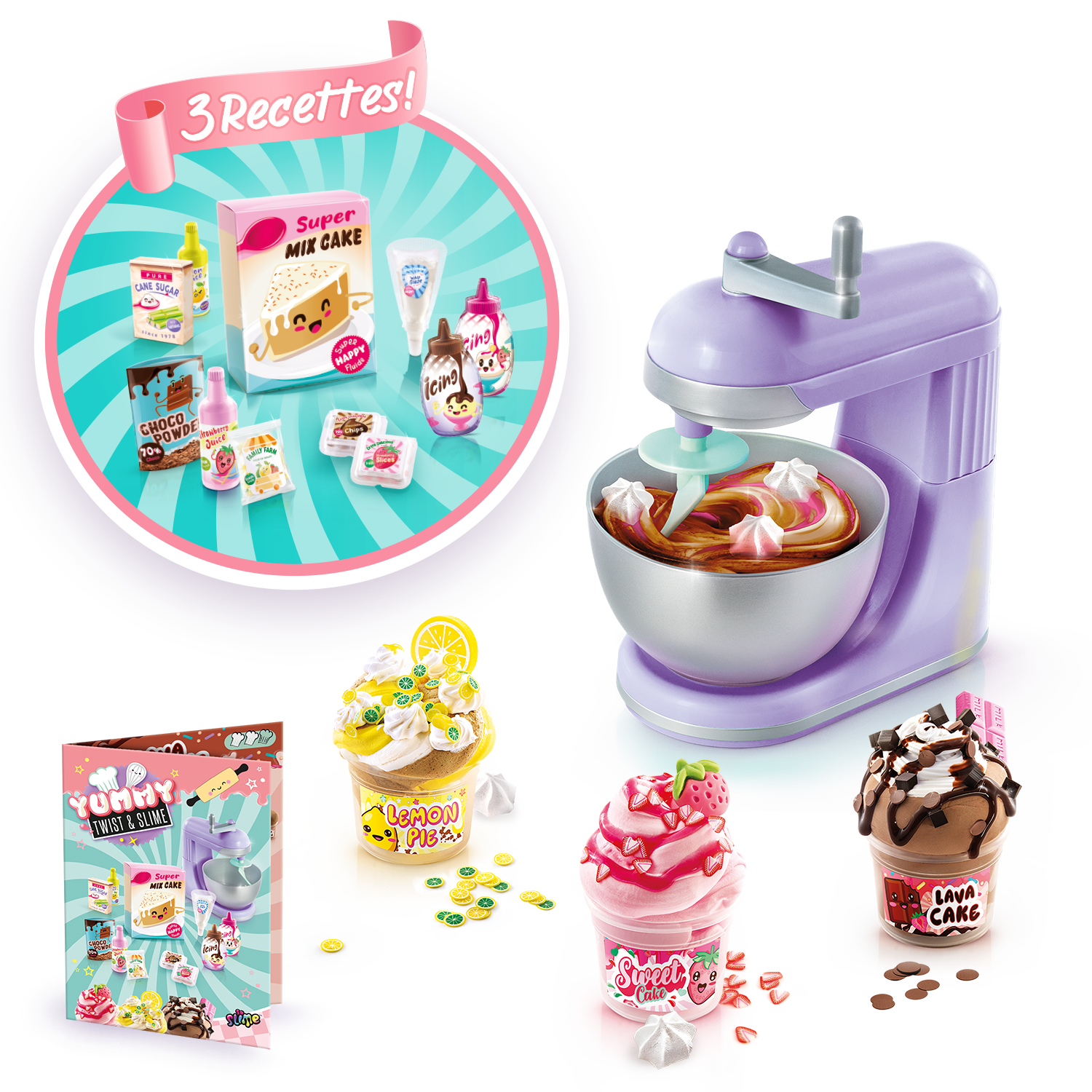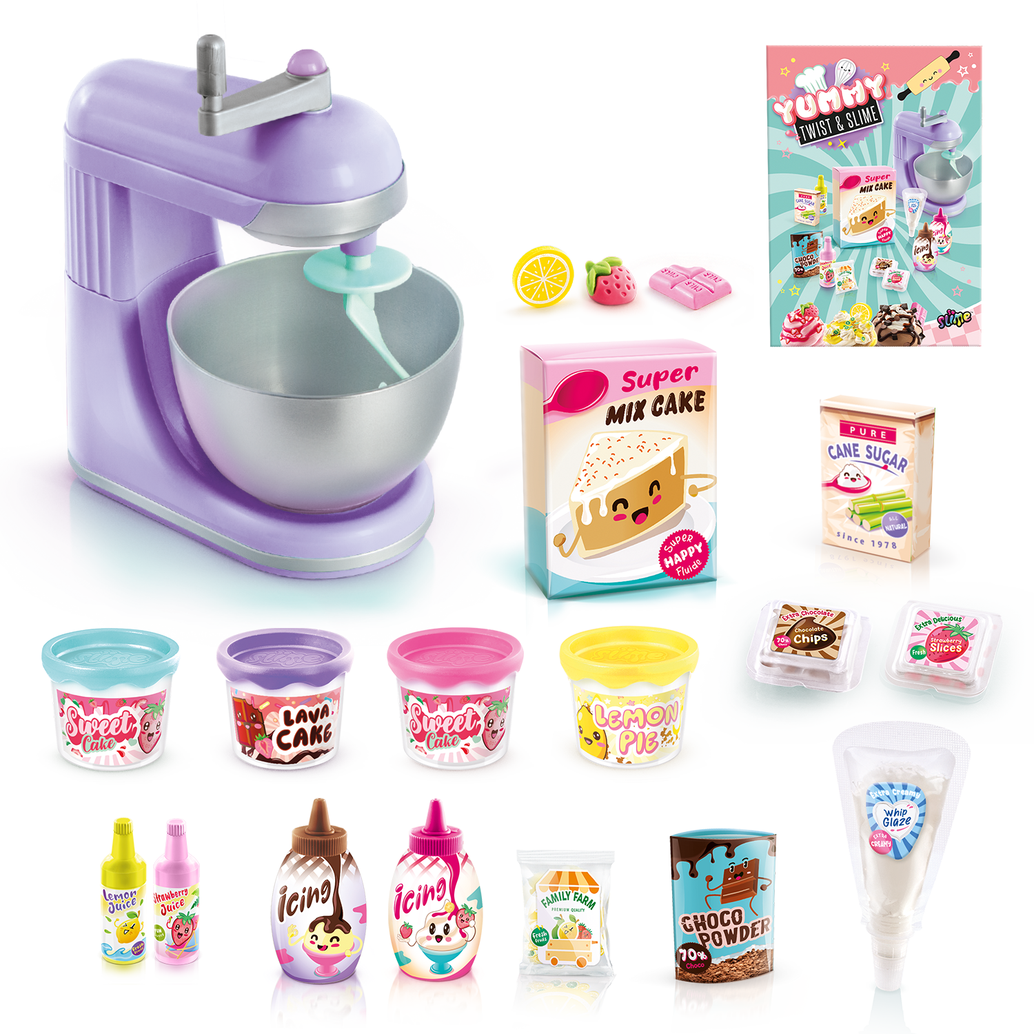 ¡Una batidora para mezclar tus slimes como un auténtico profesional! Incluye una guía de recetas para que puedas crear slimes realmente únicos. ¡Pon tu slime blanco en la batidora, añade colorante y decoraciones y observa cómo se mezcla!